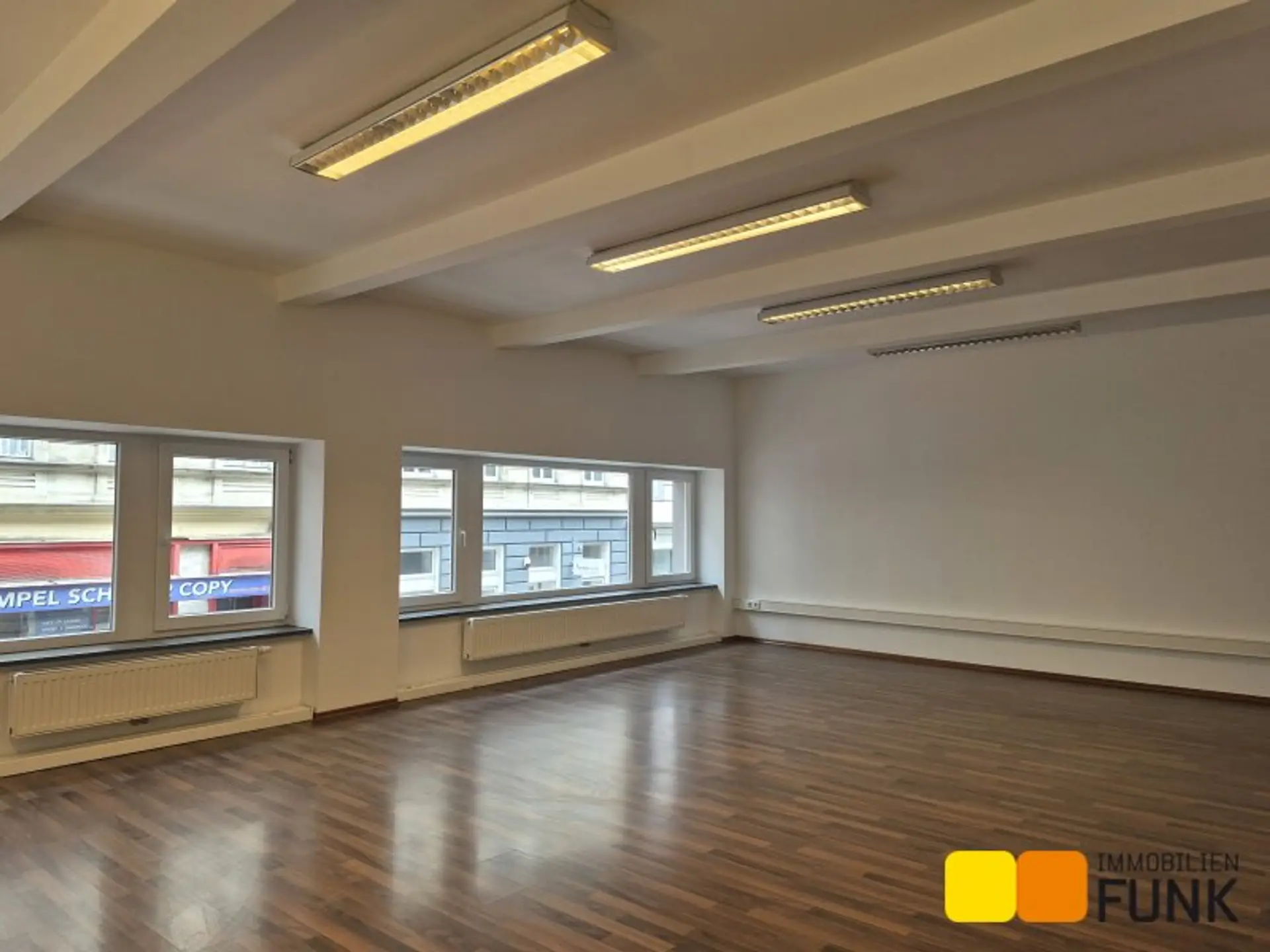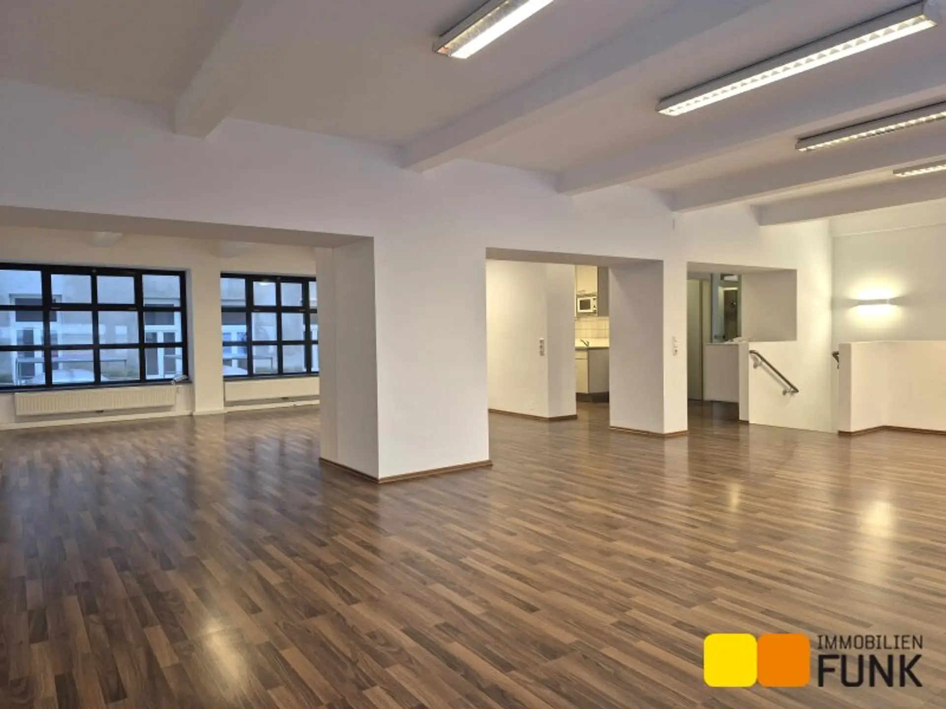 Über die interne Stiege gelangen Sie in das offene, loftartige Hauptbüro mit ca. 86 m². Zusätzlich gibt es einen separierten Bereich mit Teeküche, weiterem WC, Badezimmer sowie einem ca. 20 m² großen Büro.