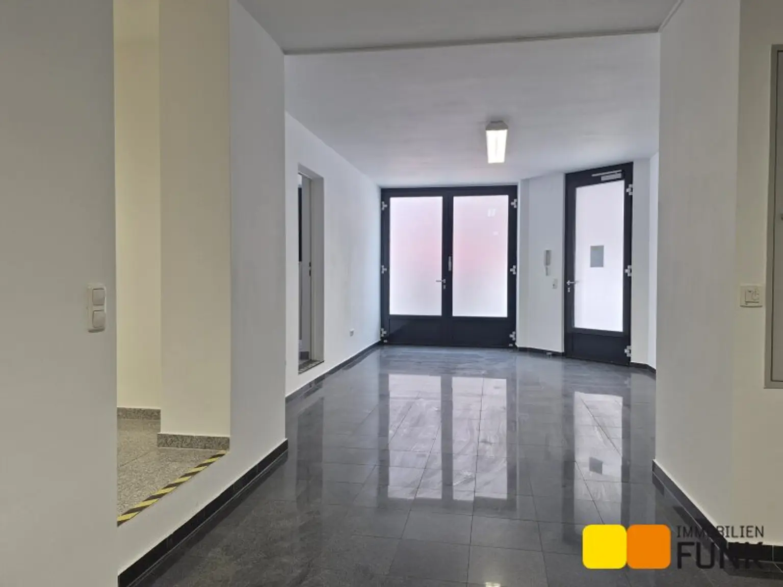 Der Zugang erfolgt straßenseitig durch ein großzügiges, verglastes Eingangstor. Bereits beim Betreten überzeugt die durchdachte Raumgestaltung, die vielfältige Nutzungsmöglichkeiten zulässt. Die untere Ebene ist mit eleganten Fliesen ausgestattet und bietet einen modernen, professionellen Eindruck. Die obere Ebene präsentiert sich als lichtdurchflutetes Loft mit hochwertigem Parkettboden und offenem Raumkonzept.