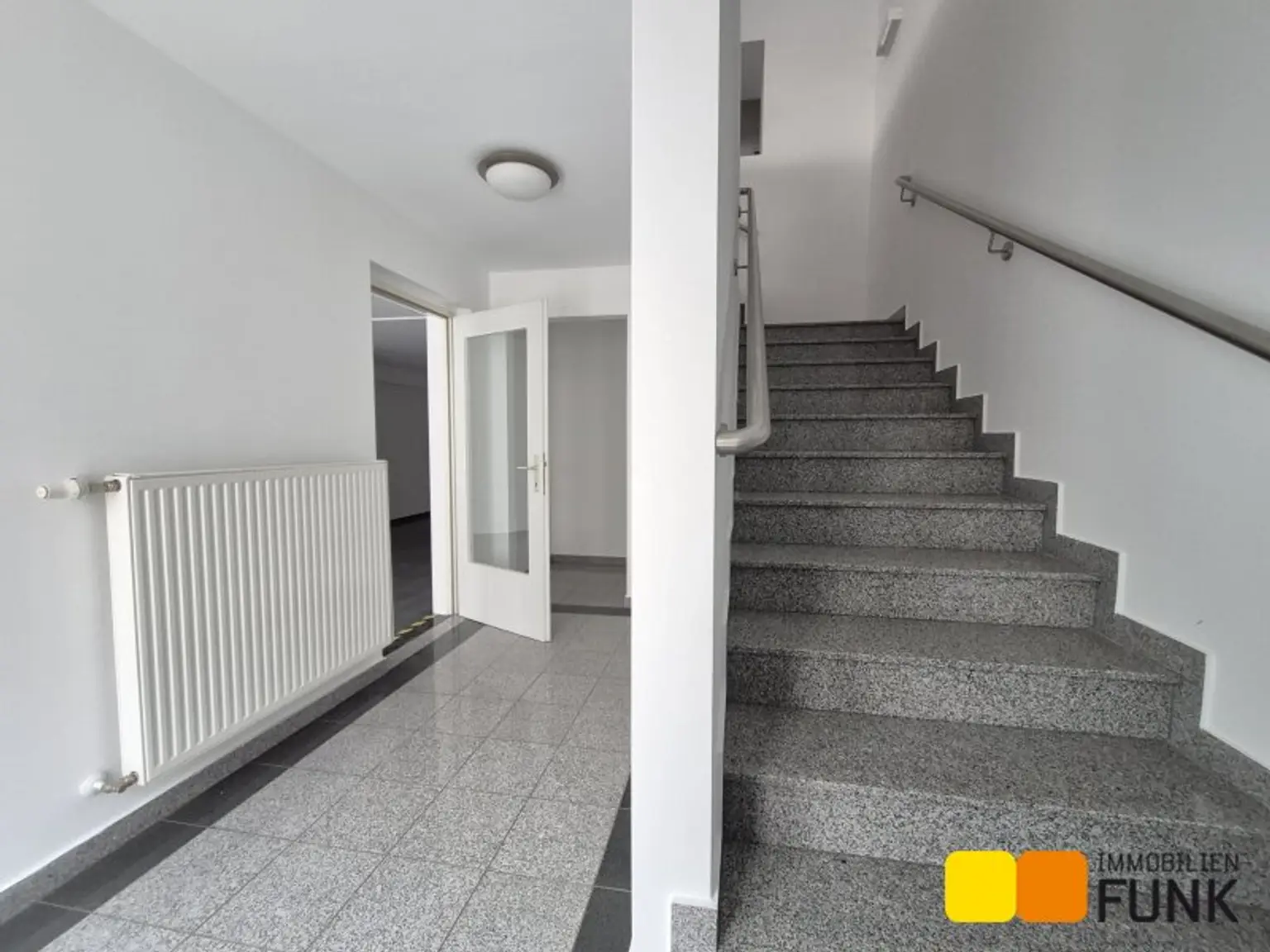 Straßenseitiger Eingang, großzügiger Empfangsbereich, im hinteren Teil eine ca. 10 m² große Garderobe mit direktem Zugang zu Bad und WC.