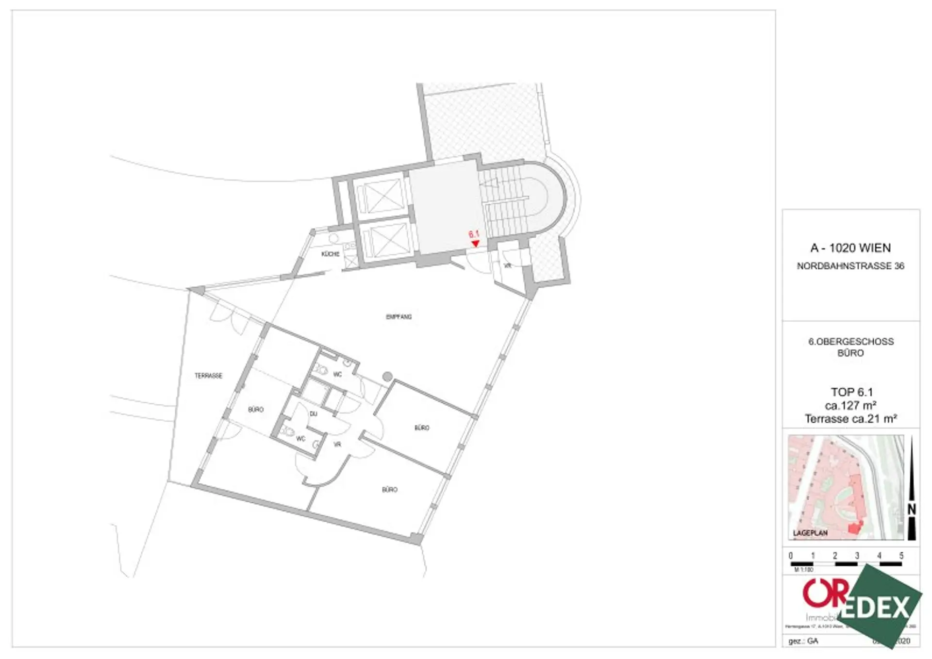 Direkt neben dem Nordbahnhofgelände und unweit der S-Bahnstation Praterstern kommt diese moderne und gut aufgeteilte Bürofläche zur Vermietung. Das Objekt verfügt über einen großen offenen Büroraum, sowie über drei weitere, getrennt begehbare Büroräumlichkeiten, von denen einer auch als Besprechungszimmer dienen kann. Des weiteren gibt es einen Abstellraum, eine Teeküche sowie getrennte WC-Einheiten. Highlight ist die ca. 21 m² große Terrasse. Die Fläche ist ab 01.09.2025 verfügbar.