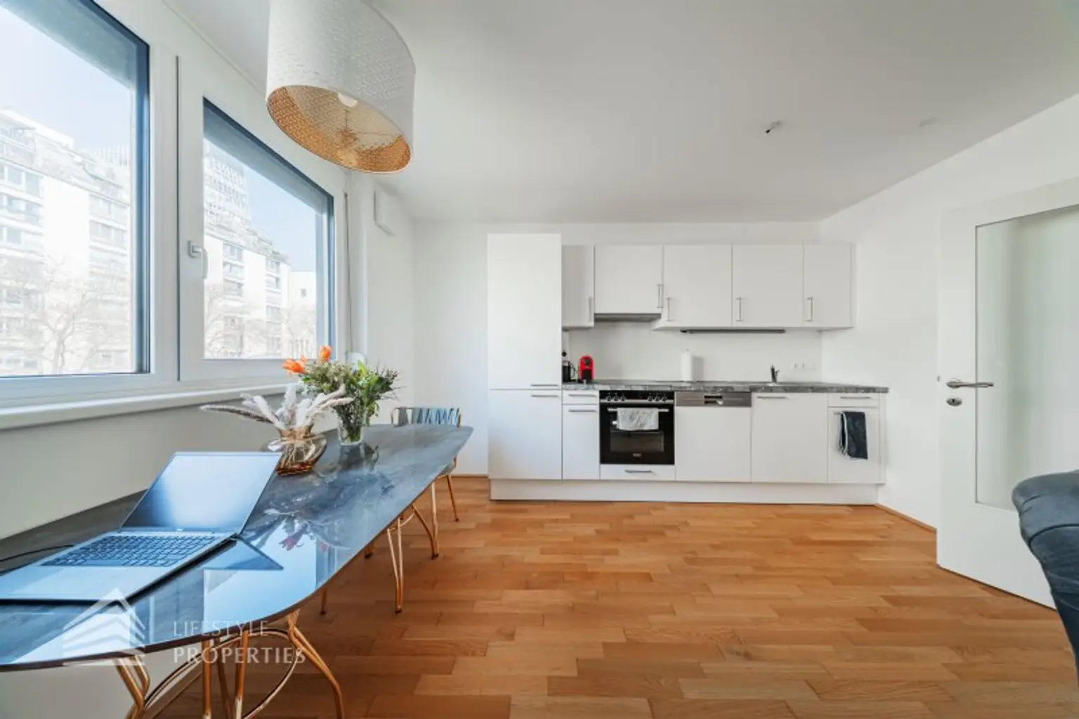 Nur wenige Gehminuten von der UNO-City entfernt befindet sich die Wohnung in einer gepflegten und modernen Wohnhausanlage und überzeugt durch eine durchdachte Raumaufteilung, helle Wohnräume sowie zwei großzügige Loggien, die den Wohnraum harmonisch ins Freie erweitern. Die Wohnung verfügt über eine Wohnfläche von ca. 64 m² und bietet ein modernes Wohnkonzept mit optimal genutztem Grundriss. Hochwertige Parkettböden, eine angenehme Fußbodenheizung sowie großzügige Fensterflächen schaffen ein helles und besonders angenehmes Wohnambiente.