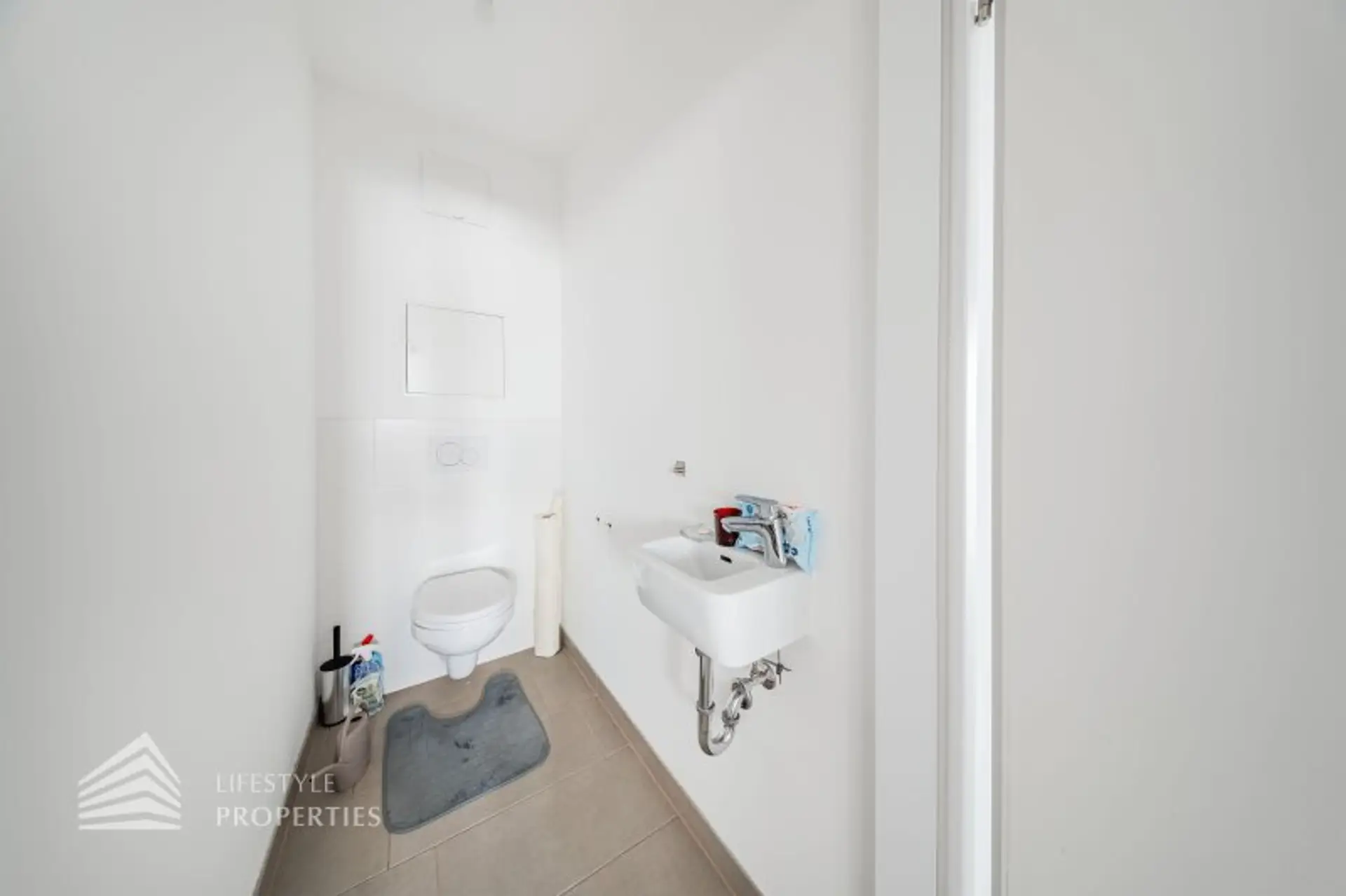 Vom Vorraum aus erreicht man außerdem das Badezimmer, das separat angelegte WC sowie einen praktischen Abstellraum mit Waschmaschinenanschluss, der zusätzlichen Stauraum innerhalb der Wohnung bietet.