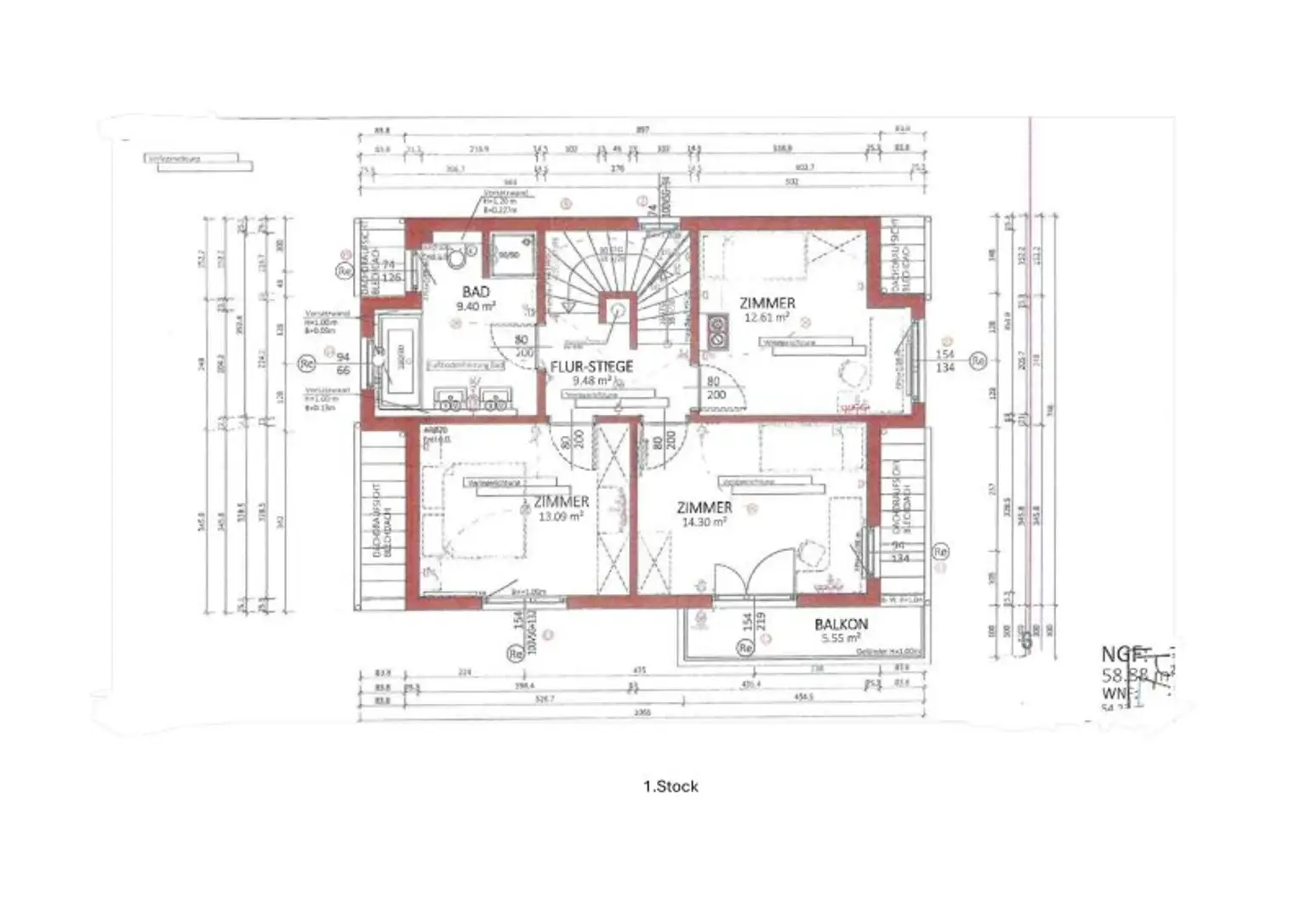 Obergeschoss: 54,23 m² Wohnnutzfläche