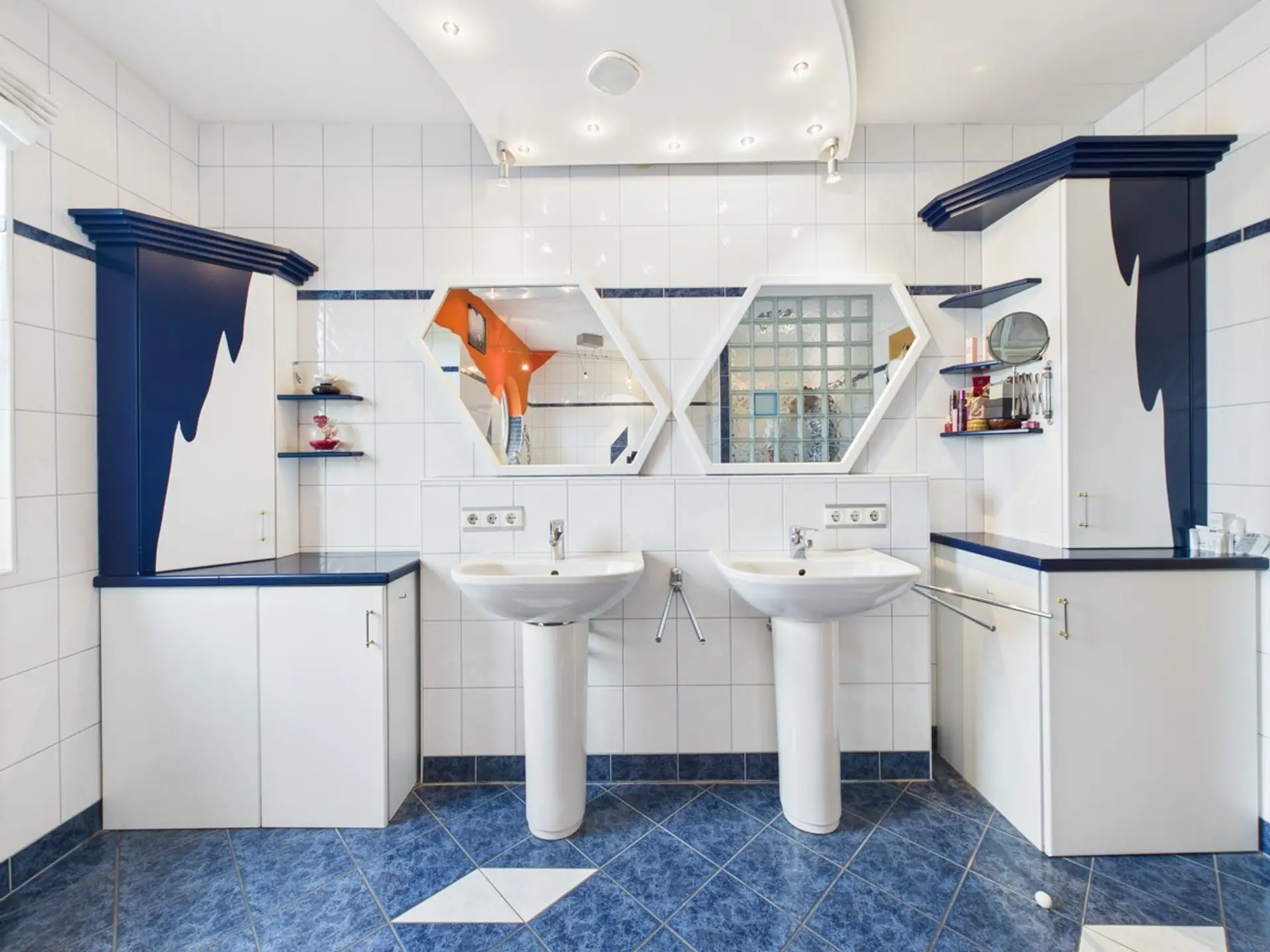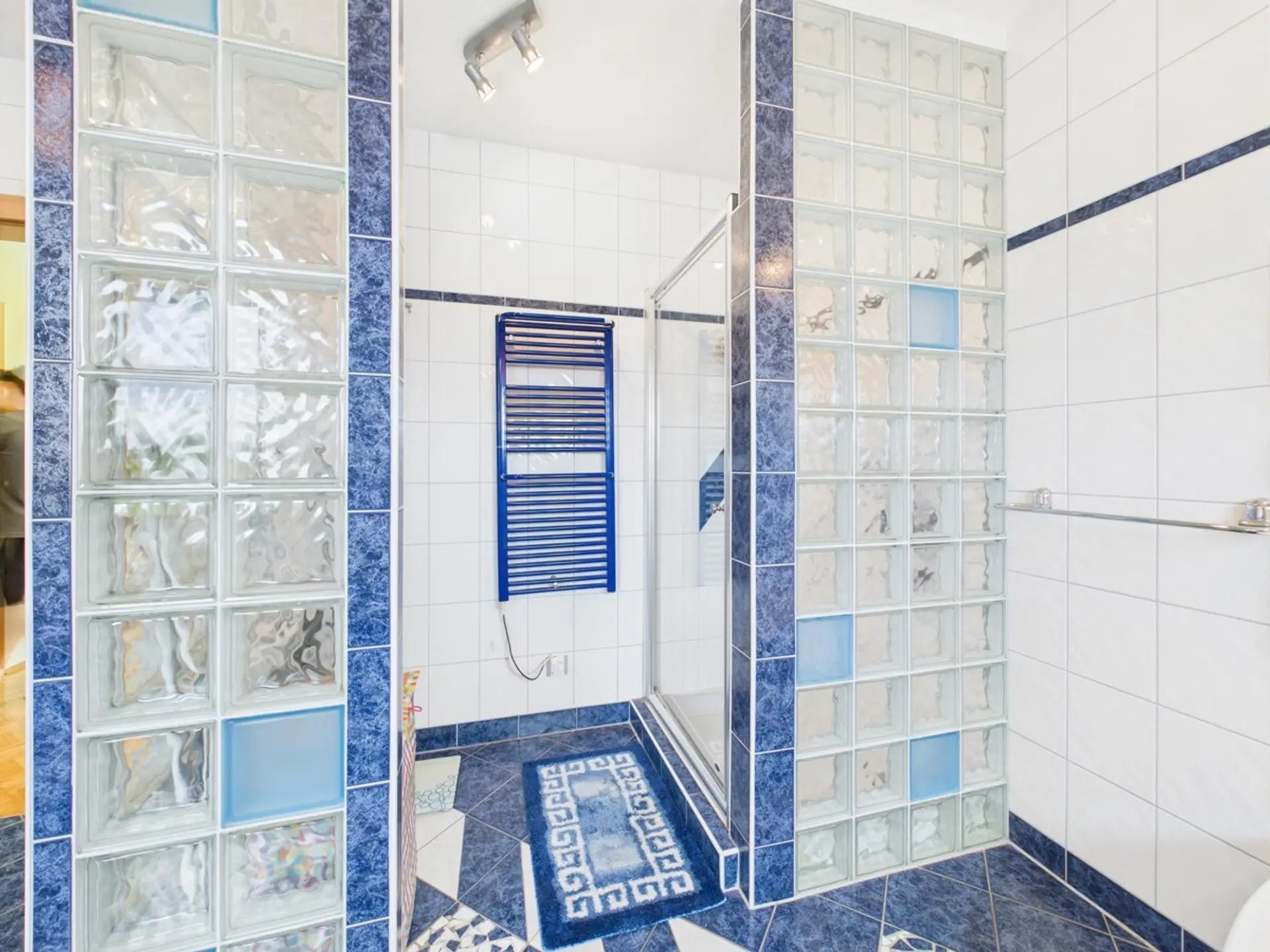 Eine stilvolle Treppe im Industrial-Design verbindet das Erdgeschoss mit dem Obergeschoss, das mit drei großzügigen Schlafzimmern und einer Raumhöhe von über vier Metern beeindruckt. Das elegante Badezimmer mit Doppelwaschbecken, elegante Eckbadewanne und großzügiger Dusche überzeugt ebenso wie das separate WC und der Balkon, der zusätzlichen Freiraum bietet.