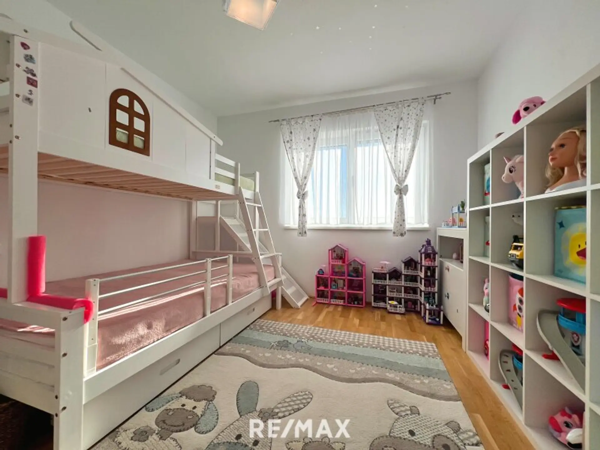 Das Obergeschoss umfasst ein großzügiges Schlafzimmer mit 18,90 m², zwei weitere Schlafzimmer bzw. Kinderzimmer mit 13,76 m² und 14,84 m², ein komfortables Badezimmer mit 10,78 m² sowie ein separates WC.
