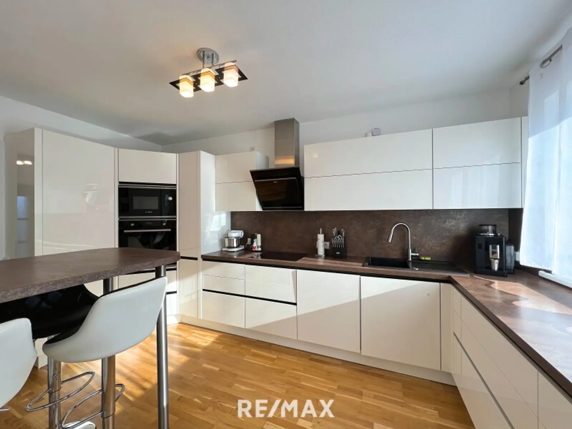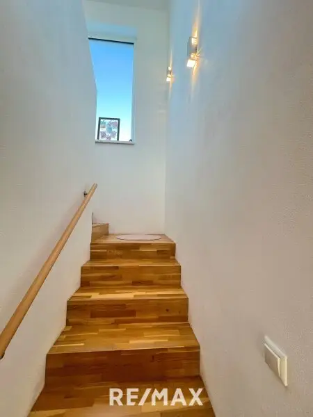 Im Erdgeschoss befinden sich ein einladender Wohn- und Essbereich mit ca. 32,81 m², eine moderne, hochwertige Einbauküche mit ca. 12,60 m², eine praktische Speis, ein Abstellraum, ein WC sowie ein Büro mit 7,7 m², ideal für Homeoffice oder Gäste.