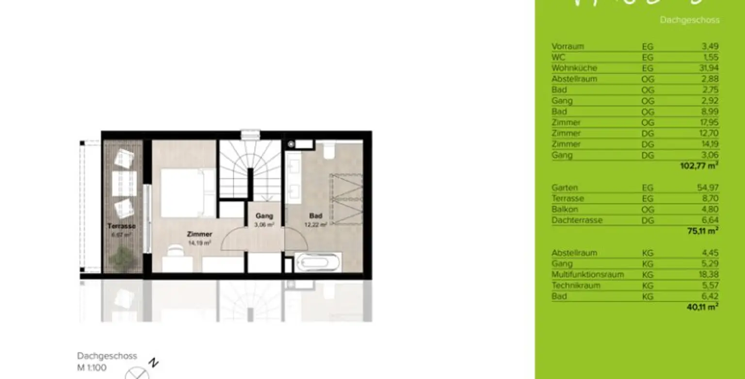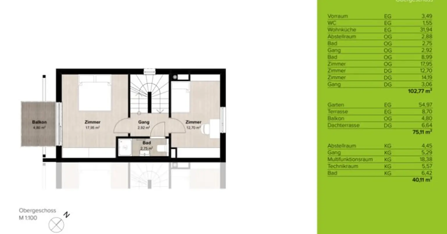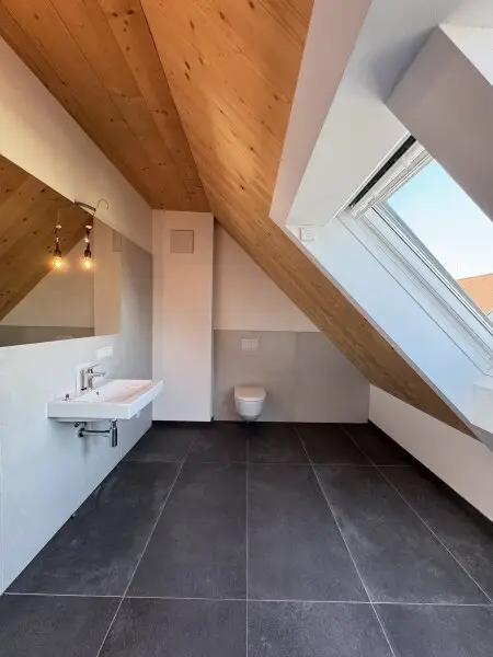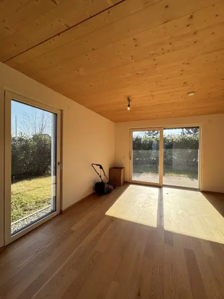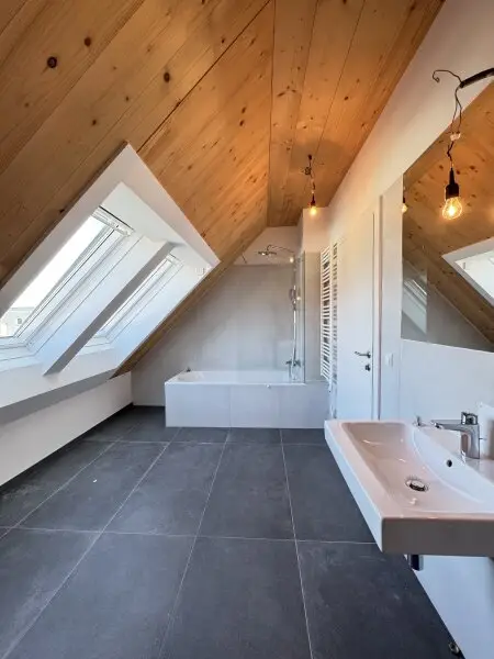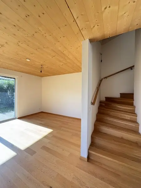 Die Wohnfläche von rund 103 m² verteilt sich auf zwei Etagen und umfasst insgesamt vier Zimmer, drei Bäder, ein Gäste-WC sowie einen praktischen Abstellraum. Eine moderne Einbauküche, Fußbodenheizung über Luftwärmepumpe, hochwertige Parkett- und Fliesenböden sowie großzügige Außenflächen – Garten, zwei Terrassen und ein Balkon – machen dieses Zuhause zu einem Wohntraum. Der voll ausgebaute Keller bietet mit rund 40 m² zusätzliche Nutzfläche, z. B. für Homeoffice, Fitness oder Hobby.
