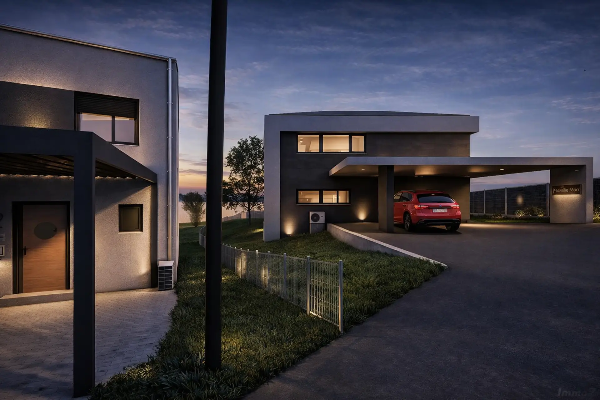 Das Doppelcarport bietet bis zur Eingangstür einen tollen Empfang.