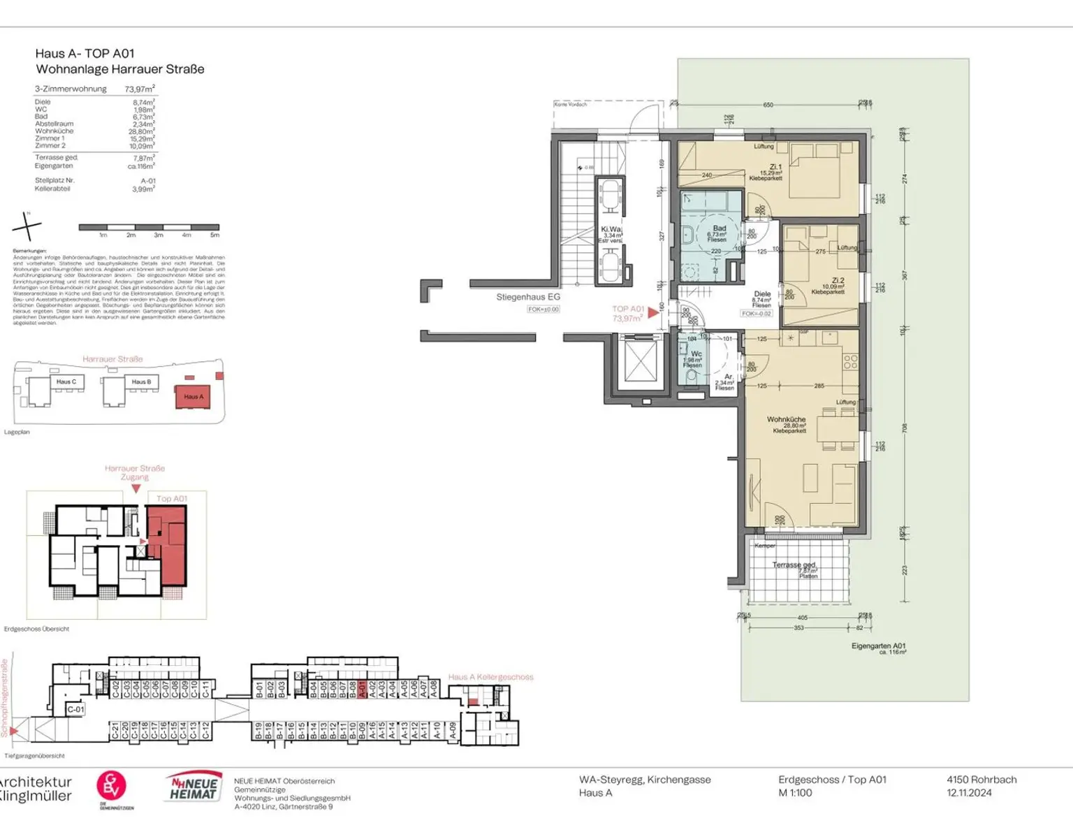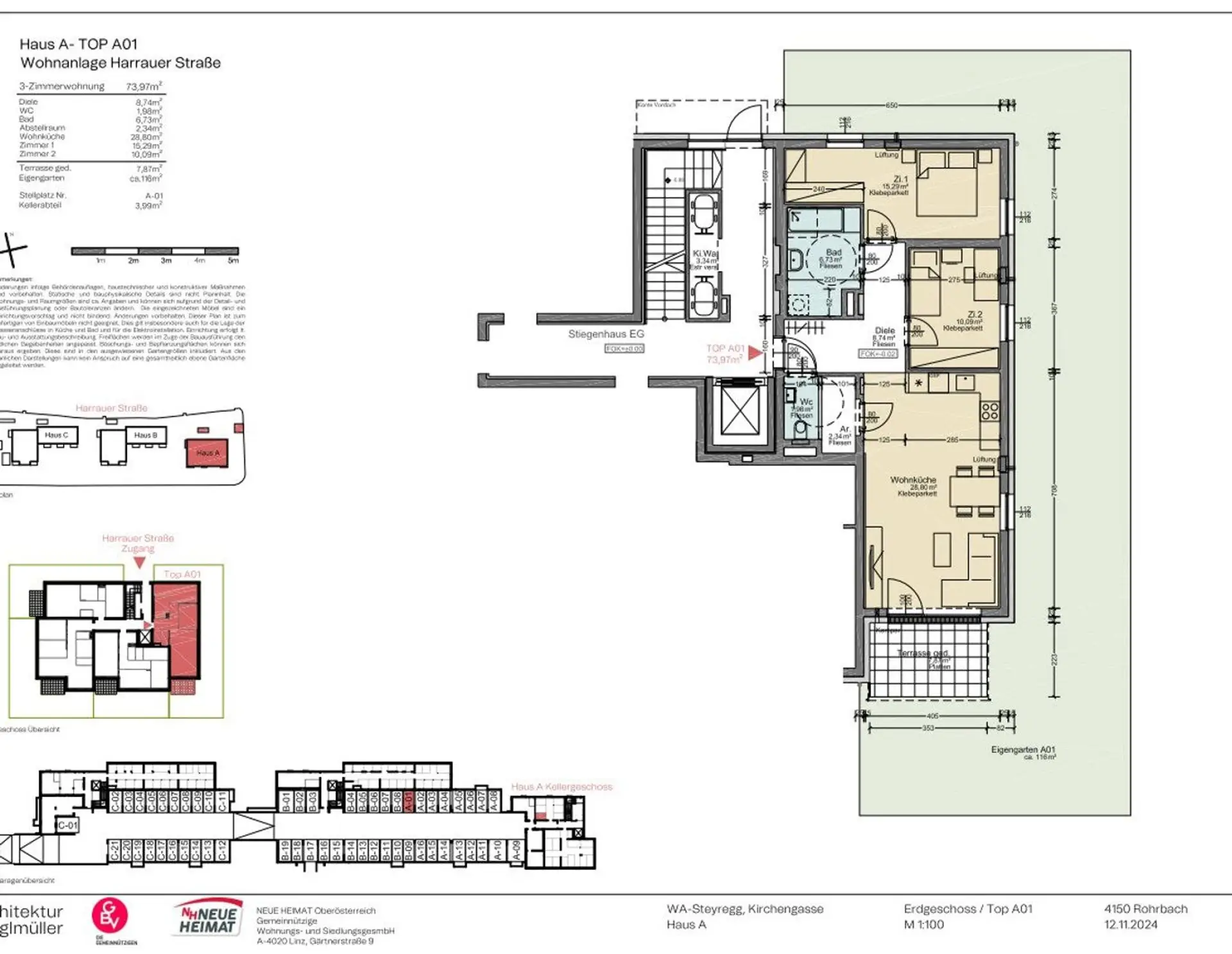 NEU - Modernes Erstbezug-Erdgeschoss mit 116 m² Garten und Garage in Rohrbach-Berg - Schlüsselübergabe: 25.11.2025