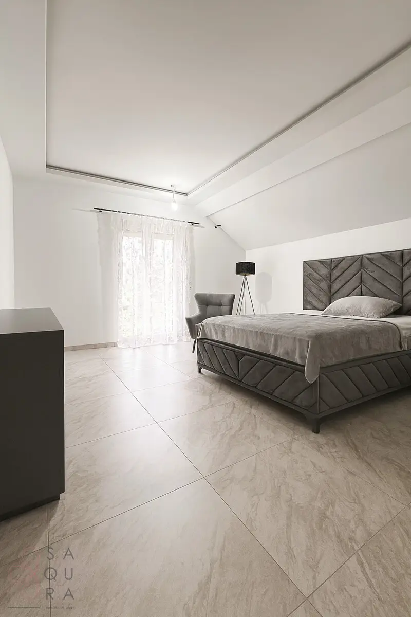 •Exklusive Feinsteinzeugfliesen 120 x 120 cm in allen Räumen