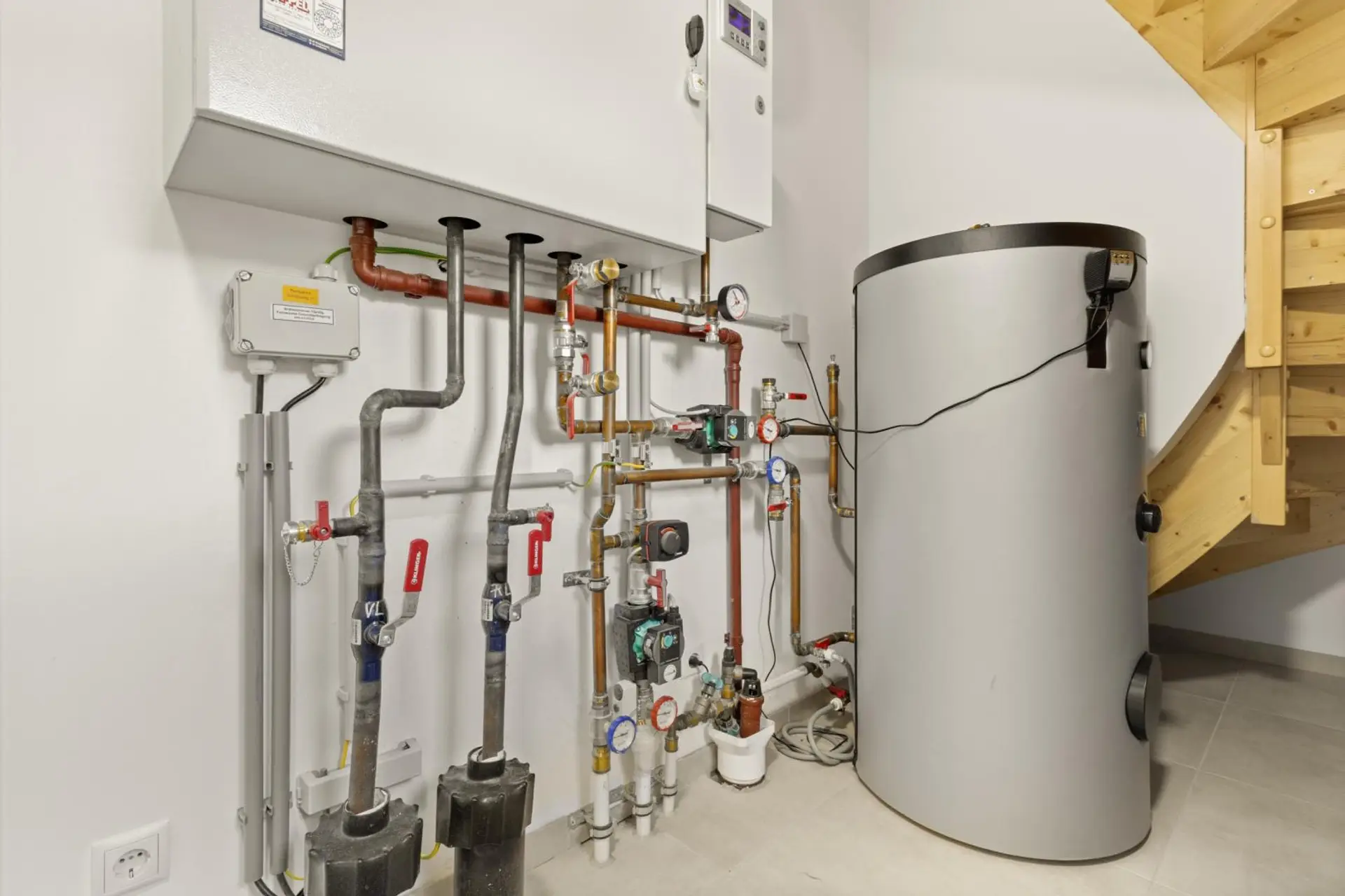 Im gesamten Haus wurden elektrische Jalousien installiert. Die Immobilie wird über eine mit Fernwärme betriebene Fußbodenheizung beheizt; auch die Warmwasseraufbereitung erfolgt über dieses System.