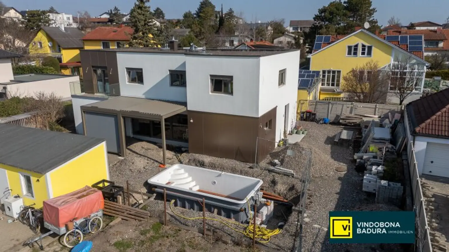 In der idyllischen Gemeinde Lanzendorf, unweit von Wien, entstand auf einem Fahnengrundstück ein freistehendes Zweifamilienhaus. Es kann sowohl als großzügiges Einfamilienhaus mit zusätzlicher Wohneinheit als auch als Mehrgenerationenhaus genutzt werden kann. Der Hauptwohnbereich bildet die zentrale Wohneinheit des Hauses. Zusätzlich befindet sich im Gebäude eine separate Einliegerwohnung, die sich über das Erdgeschoss sowie das Obergeschoss erstreckt. Die Einliegerwohnung verfügt über ein eigenes WC sowie Badezimmer. Im Obergeschoss befindet sich ein Raum, der ideal als Schlafzimmer genutzt werden kann und zusätzlich über einen eigenen Balkon verfügt. Durch diese Aufteilung eignet sich die Immobilie besonders gut für Mehrgenerationenwohnen, zur Kombination von Wohnen und Vermietung oder als Wohnlösung mit separatem Bereich für Gäste.