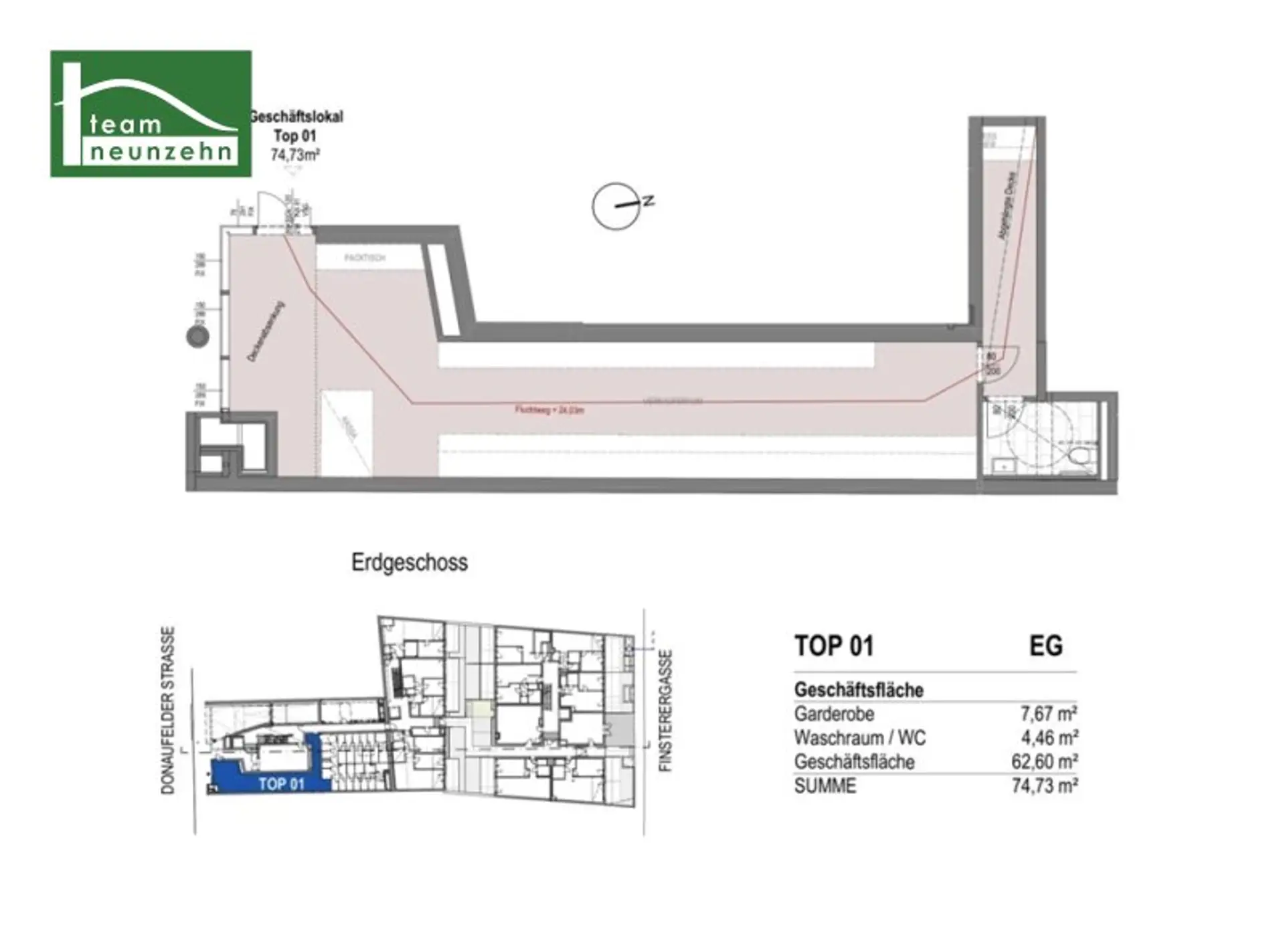 Die Geschäftsfläche umfasst eine Fläche von 74,73 m².