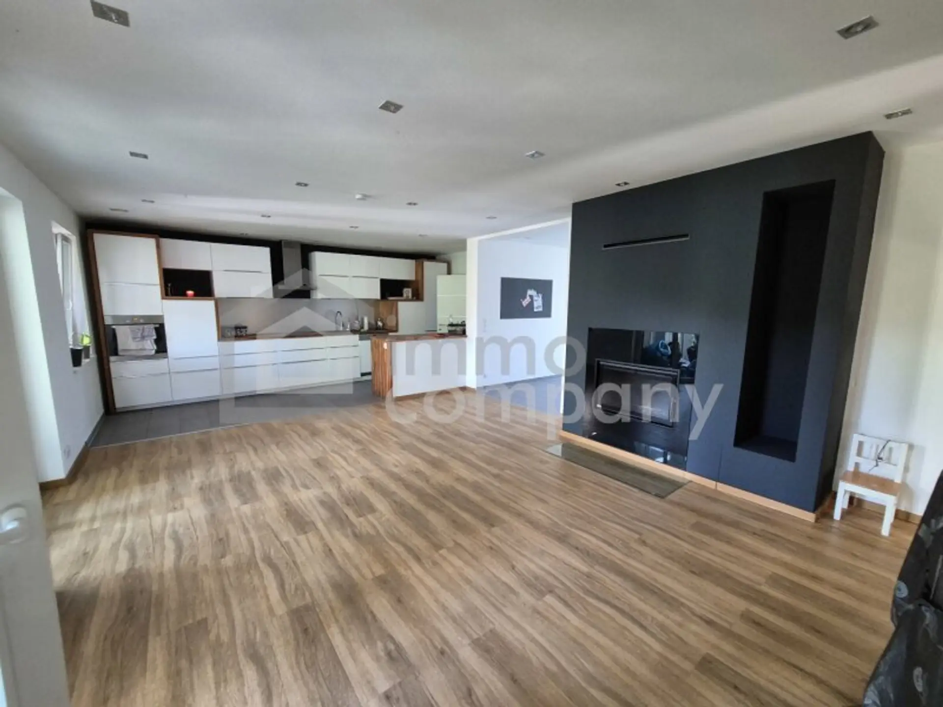 * Wohnbereich mit offener Küche und mit dem kuscheligen Holzofen, der durch seine Umluftgebläse 4 Zimmer auf angenehme Temperatur erwärmen kann und somit die Wärmepumpe entlastet