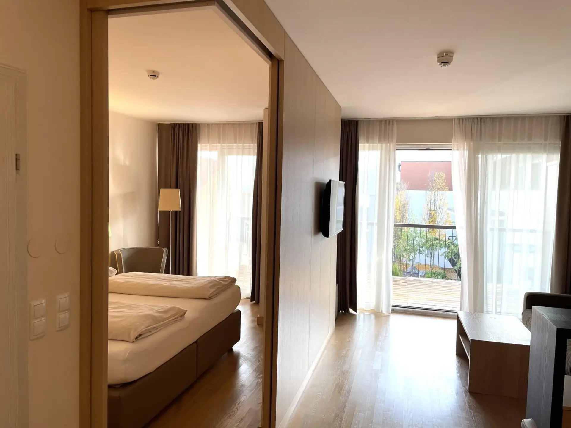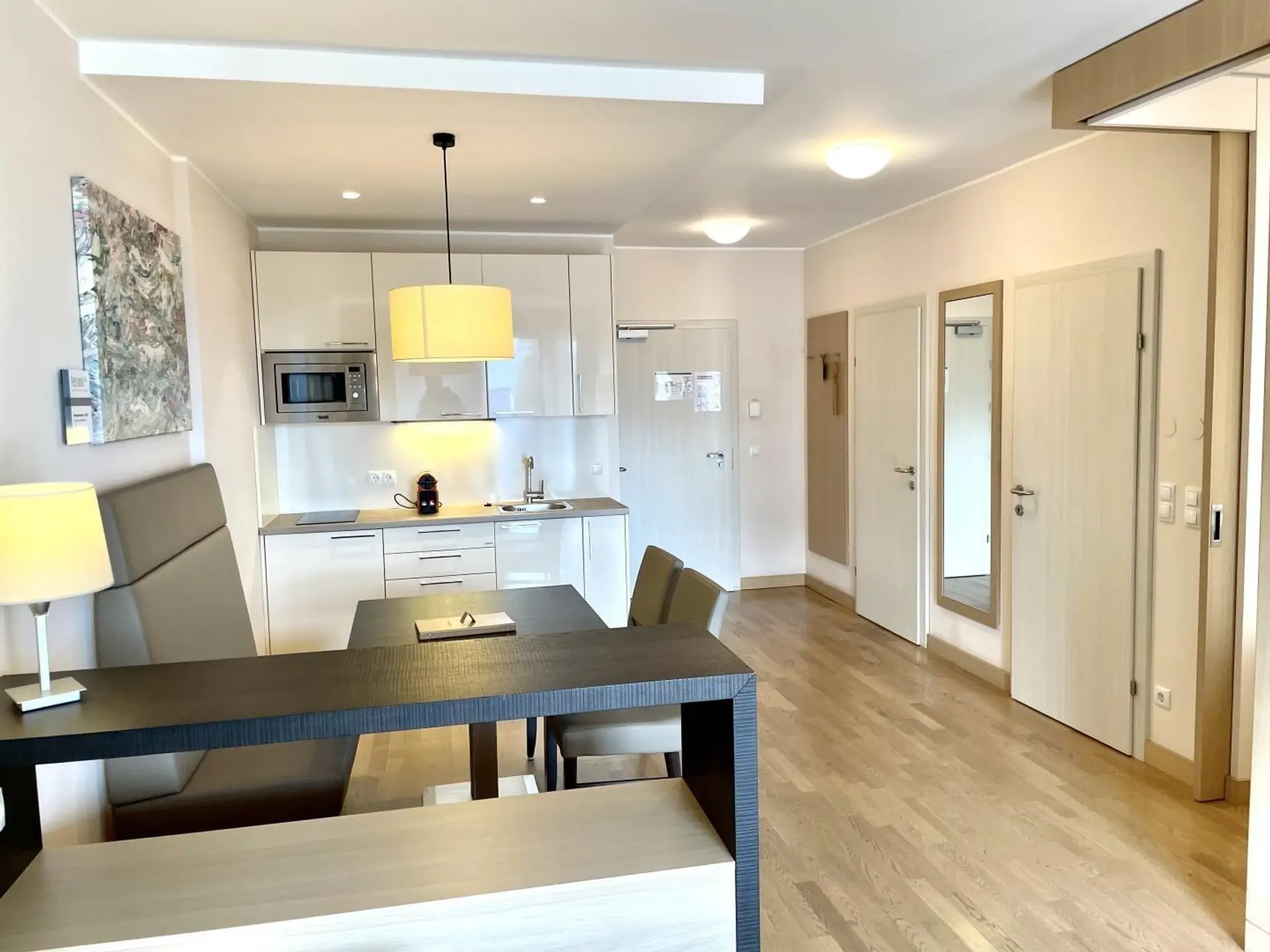 Die großzügige Terrasse, zu der Sie vom Koch-/Wohn-/Essbereich oder vom Schlafbereich aus gelangen, bietet einen herrlichen Ausblick und lädt zum Verweilen und Gneißen ein. Komplett, hochwertig möbliert ausgestattet, verspricht dieses Appartement modernen Komfort. Eine neue, schöne Küche wird in der 20. KW eingebaut. Zur Ausstattung gehören Safe, Telefon, Flachbildfernseher sowie WLAN.