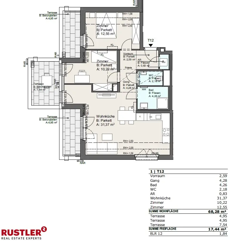 Willkommen in einem Wohnprojekt, das modernes Design, nachhaltige Technologien und höchste Lebensqualität vereint. Am Khuenweg 5 entsteht eine exklusive Wohnanlage mit 30 Eigentumswohnungen, die durch durchdachte Architektur, großzügige Freiflächen und eine naturnahe Lage im Grünen überzeugen. Architektur & Ausstattung Das Projekt besticht durch eine ästhetisch anspruchsvolle, moderne Architektur, die sich harmonisch in die Umgebung einfügt. Hochwertige Materialien, Eichenparkett, großformatige Feinsteinfliesen, sowie Markenarmaturen in Bad und Küche garantieren ein exklusives Wohngefühl. Großzügige Fensterflächen schaffen helle, freundliche Räume und sorgen für ein angenehmes Wohnklima. Jede Einheit verfügt über mindestens eine Freifläche – ob Balkon, Terrasse, Loggia oder Garten – mit hochwertigen Betonplattenbelägen, punktueller Ambientebeleuchtung und frostsicherer Wasserentnahmestelle. Auch funktionale Aspekte wurden nicht vergessen: Fußbodenheizung, elektrische Handtuchheizkörper im Bad, dreifach verglaste Holz-Alu-Fenster mit elektrischem Sonnenschutz sowie vorbereitete Anschlüsse für TV, Internet, Telefon und Alarmanlagen (in EG-Wohnungen) sind Standard. Zur gemeinschaftlichen Nutzung stehen Einlagerungsräume, ein Fahrrad- und Kinderwagenraum, ein Paket- Postbereich, ein Kleinkinderspielplatz auf Eigengrund zur Verfügung. Außerdem gibt es eine Tiefgarage mit 17 PKW-Stellplätzen (inkl. Vorbereitung für E-Mobilität) wo ein Stellplatz für € 28.800,- erworben werden kann. Die Erschließung aller Geschoße erfolgt barrierefrei über Liftanlagen. Nachhaltigkeit & Technik Innovative Technologien wie eine Photovoltaikanalge, eine zentrale Wasser-Wasser-Wärmepumpe und moderne Isolierungssysteme senken nicht nur die Betriebskosten, sondern ermöglichen ein umweltbewusstes und zukunftssicheres Wohnen – ganz ohne fossile Brennstoffe. In den Sommermonaten sorgt eine Temperierung über den Fußboden für angenehme Raumluft und in Dachgeschosswohnungen steht zusätzlich eine Split-Klimaanlage mit Einzelraumsteuerung zur Verfügung. Das Projekt ist zudem mit dem klimaaktiv-Zertifikat ausgezeichnet. Lage & Infrastruktur Khuenweg 5 liegt eingebettet in eine ruhige Wohngegend, geprägt von Grünflächen, Naherholungsgebieten und gleichzeitig urbaner Infrastruktur. Kindergärten, Schulen, Einkaufsmöglichkeiten und Gastronomie befinden sich in Gehweite, die öffentliche Verkehrsanbindung ist ausgezeichnet. In nur wenigen Minuten erreichen Sie das Mühlwasser, die Donauinsel oder das weitläufige Radwegenetz. Ob sportlich aktiv oder naturverbunden entspannt – hier ist Ihre Freizeitgestaltung so vielfältig wie Ihr Lebensstil. Weitere Highlights * Barrierefreier Zugang zu allen Einheiten * Großzügige Freiflächen wie Balkone, Terrassen oder Gärten * E-Parkplätze (Vorbereitung für Ladestationen) * Ideal als Eigentumswohnung oder Vorsorgeinvestition Kontaktieren Sie uns noch heute für weitere Informationen oder einen Besichtigungstermin!