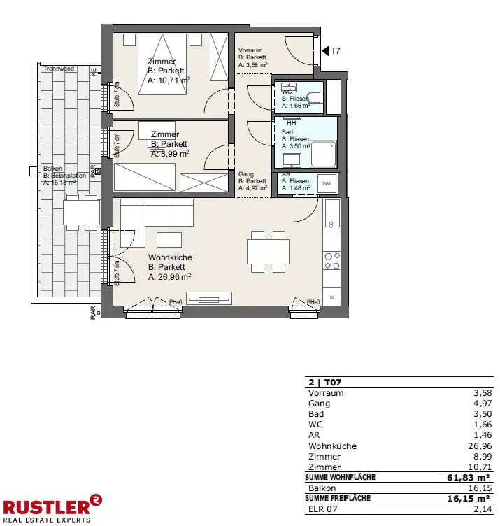 Willkommen in einem Wohnprojekt, das modernes Design, nachhaltige Technologien und höchste Lebensqualität vereint. Am Khuenweg 5 entsteht eine exklusive Wohnanlage mit 30 Eigentumswohnungen, die durch durchdachte Architektur, großzügige Freiflächen und eine naturnahe Lage im Grünen überzeugen. Architektur & Ausstattung Das Projekt besticht durch eine ästhetisch anspruchsvolle, moderne Architektur, die sich harmonisch in die Umgebung einfügt. Hochwertige Materialien, Eichenparkett, großformatige Feinsteinfliesen, sowie Markenarmaturen in Bad und Küche garantieren ein exklusives Wohngefühl. Großzügige Fensterflächen schaffen helle, freundliche Räume und sorgen für ein angenehmes Wohnklima. Jede Einheit verfügt über mindestens eine Freifläche – ob Balkon, Terrasse, Loggia oder Garten – mit hochwertigen Betonplattenbelägen, punktueller Ambientebeleuchtung und frostsicherer Wasserentnahmestelle. Auch funktionale Aspekte wurden nicht vergessen: Fußbodenheizung, elektrische Handtuchheizkörper im Bad, dreifach verglaste Holz-Alu-Fenster mit elektrischem Sonnenschutz sowie vorbereitete Anschlüsse für TV, Internet, Telefon und Alarmanlagen (in EG-Wohnungen) sind Standard. Zur gemeinschaftlichen Nutzung stehen Einlagerungsräume, ein Fahrrad- und Kinderwagenraum, ein Paket- Postbereich, ein Kleinkinderspielplatz auf Eigengrund zur Verfügung. Außerdem gibt es eine Tiefgarage mit 17 PKW-Stellplätzen (inkl. Vorbereitung für E-Mobilität) wo ein Stellplatz für € 28.800,- erworben werden kann. Die Erschließung aller Geschoße erfolgt barrierefrei über Liftanlagen. Nachhaltigkeit & Technik Innovative Technologien wie eine Photovoltaikanalge, eine zentrale Wasser-Wasser-Wärmepumpe und moderne Isolierungssysteme senken nicht nur die Betriebskosten, sondern ermöglichen ein umweltbewusstes und zukunftssicheres Wohnen – ganz ohne fossile Brennstoffe. In den Sommermonaten sorgt eine Temperierung über den Fußboden für angenehme Raumluft und in Dachgeschosswohnungen steht zusätzlich eine Split-Klimaanlage mit Einzelraumsteuerung zur Verfügung. Das Projekt ist zudem mit dem klimaaktiv-Zertifikat ausgezeichnet. Lage & Infrastruktur Khuenweg 5 liegt eingebettet in eine ruhige Wohngegend, geprägt von Grünflächen, Naherholungsgebieten und gleichzeitig urbaner Infrastruktur. Kindergärten, Schulen, Einkaufsmöglichkeiten und Gastronomie befinden sich in Gehweite, die öffentliche Verkehrsanbindung ist ausgezeichnet. In nur wenigen Minuten erreichen Sie das Mühlwasser, die Donauinsel oder das weitläufige Radwegenetz. Ob sportlich aktiv oder naturverbunden entspannt – hier ist Ihre Freizeitgestaltung so vielfältig wie Ihr Lebensstil. Weitere Highlights * Barrierefreier Zugang zu allen Einheiten * Großzügige Freiflächen wie Balkone, Terrassen oder Gärten * E-Parkplätze (Vorbereitung für Ladestationen) * Ideal als Eigentumswohnung oder Vorsorgeinvestition Kontaktieren Sie uns noch heute für weitere Informationen oder einen Besichtigungstermin!