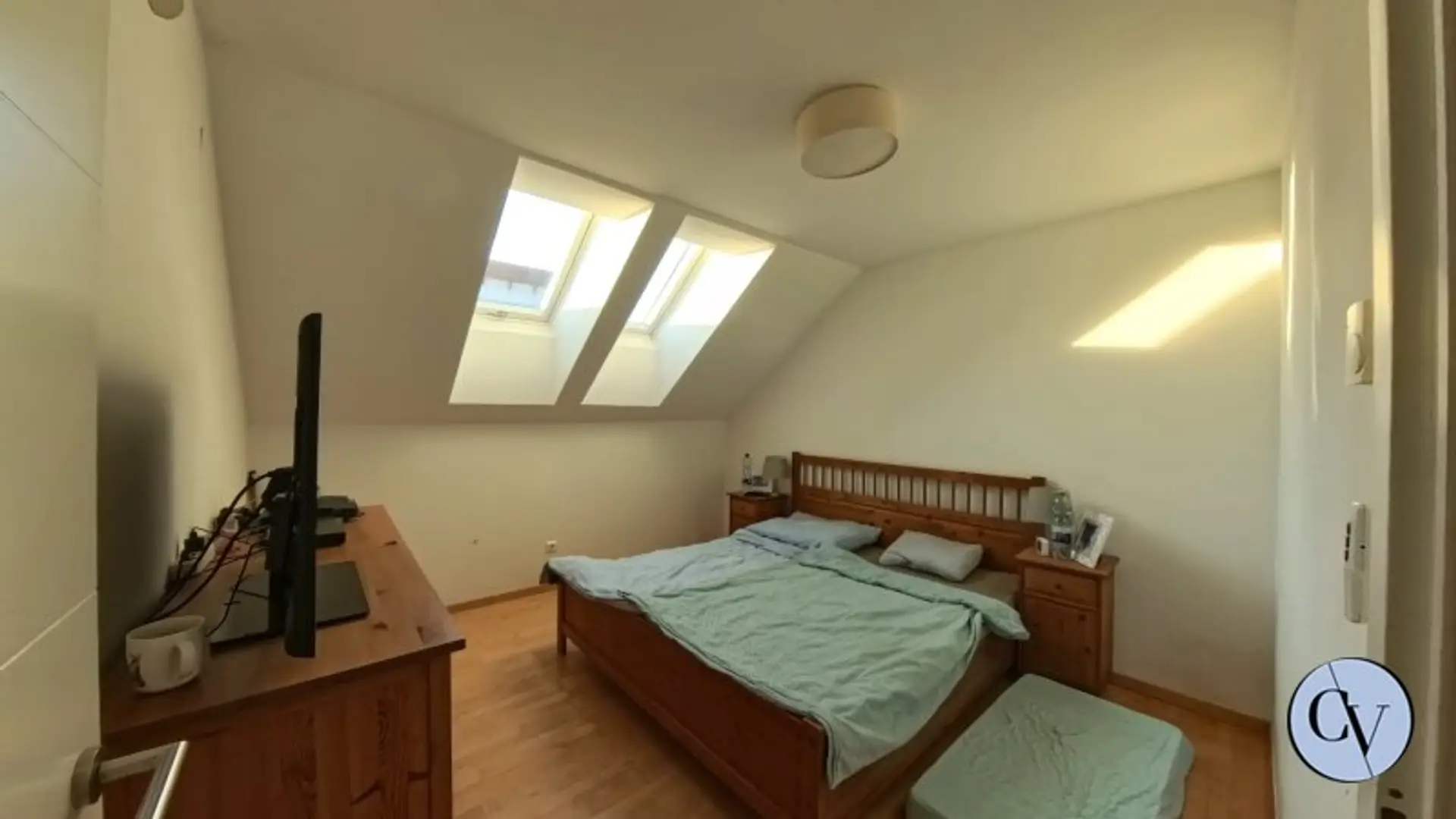 Im Obergeschoss erwarten Sie drei gemütliche Schlafzimmer, ein großzügiges Badezimmer mit Eckbadewanne, Dusche und WC, ein begehbarer Schrankraum sowie eine praktische Nische, die sich ideal als Homeoffice oder zusätzliche Abstellfläche nutzen lässt.