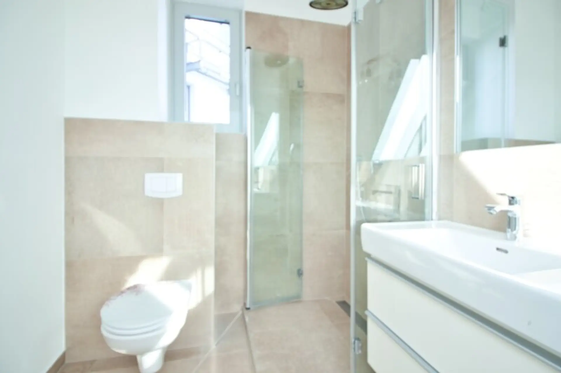 Mittels Aufzug gelangt man in das 1. DG eines gepflegten Wohngebäudes. Beim Betreten dieses besonderen Objekts, fallen sofort die geschmackvollen Verglasungen, der offene, helle und moderne Grundriss und der einladende Stiegenaufgang ins Auge.