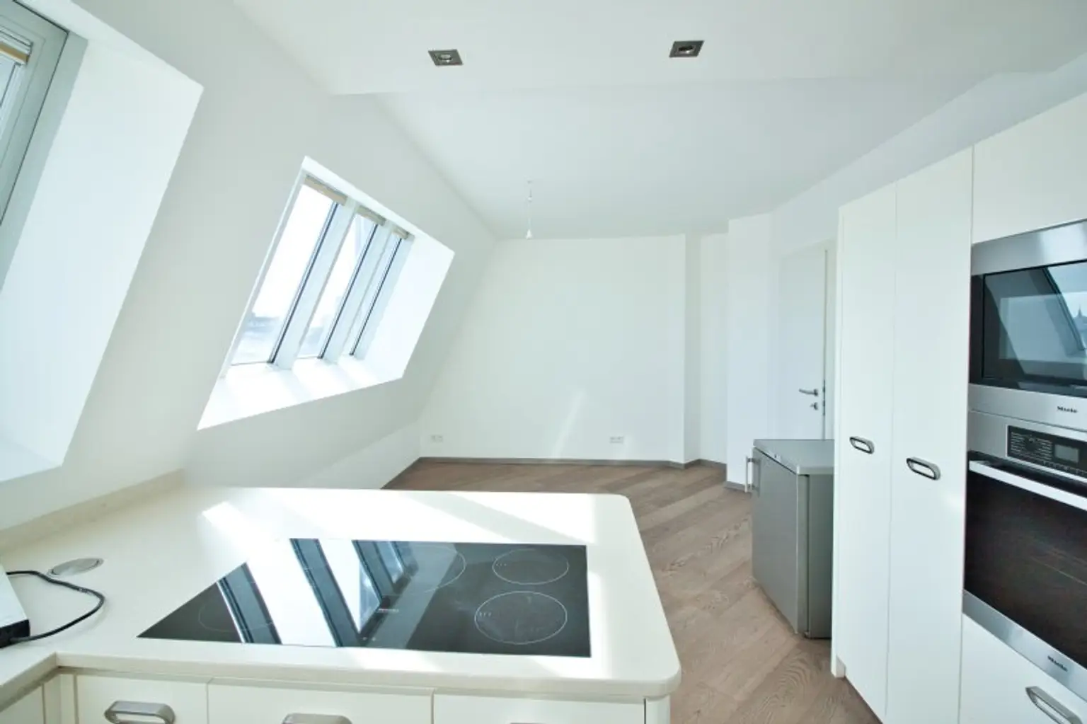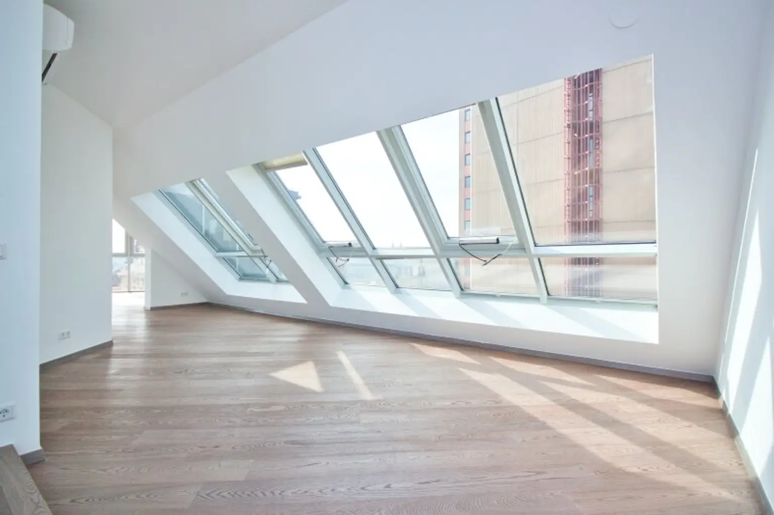 Die Wohnung bietet Parkett- und hochwertige Fliesenböden, Fußbodenheizung, eine Klimaanlage sowie herrliche Panorama-Fenster, die eine atemberaubende Aussicht und Privatheit über den Dächern Wiens ermöglichen.