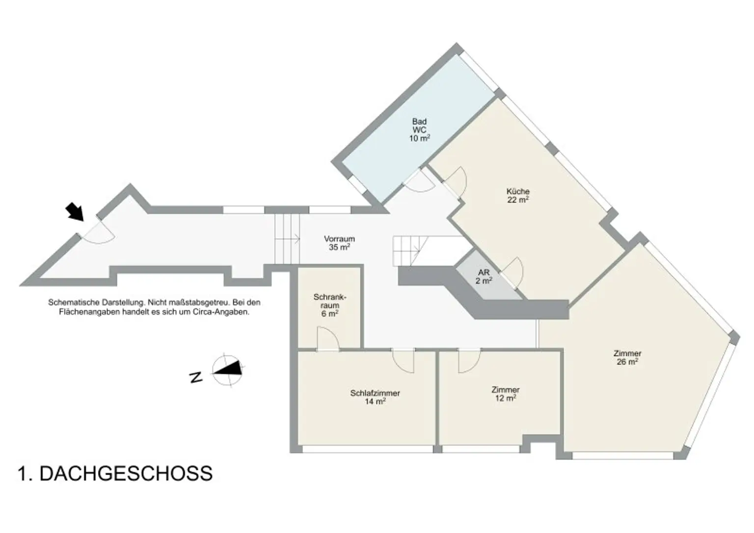 Der moderne Dachgeschossausbau des gepflegten, modernisierten Altbauwohnhauses aus den 1900er Jahren, wurde ca. 2010 fertiggestellt.