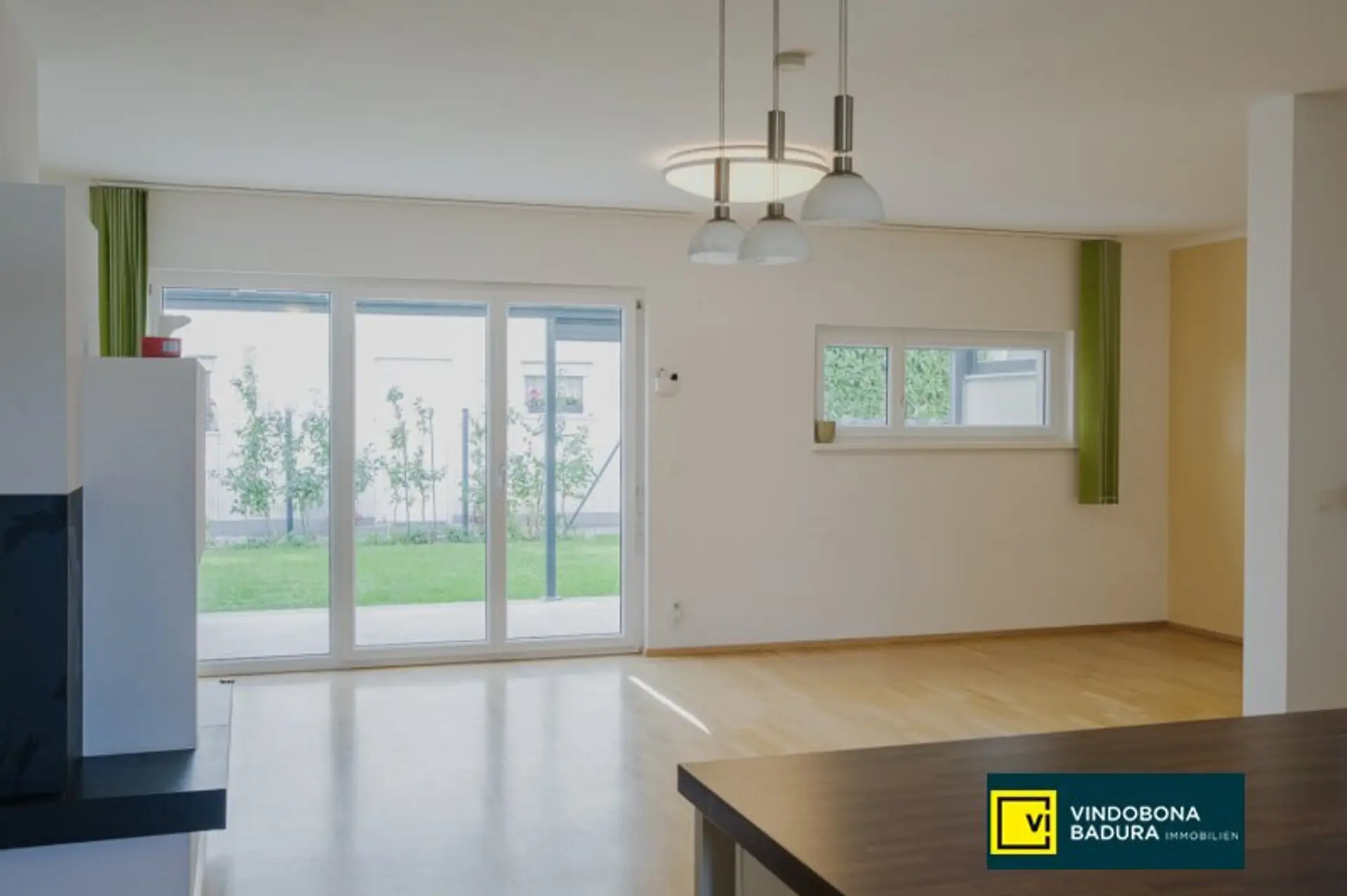 For rent is a modern terraced house offering approximately 134 m² of living space plus a basement, a private parking space, and a well-kept garden in a quiet, green location on the outskirts of Vienna.