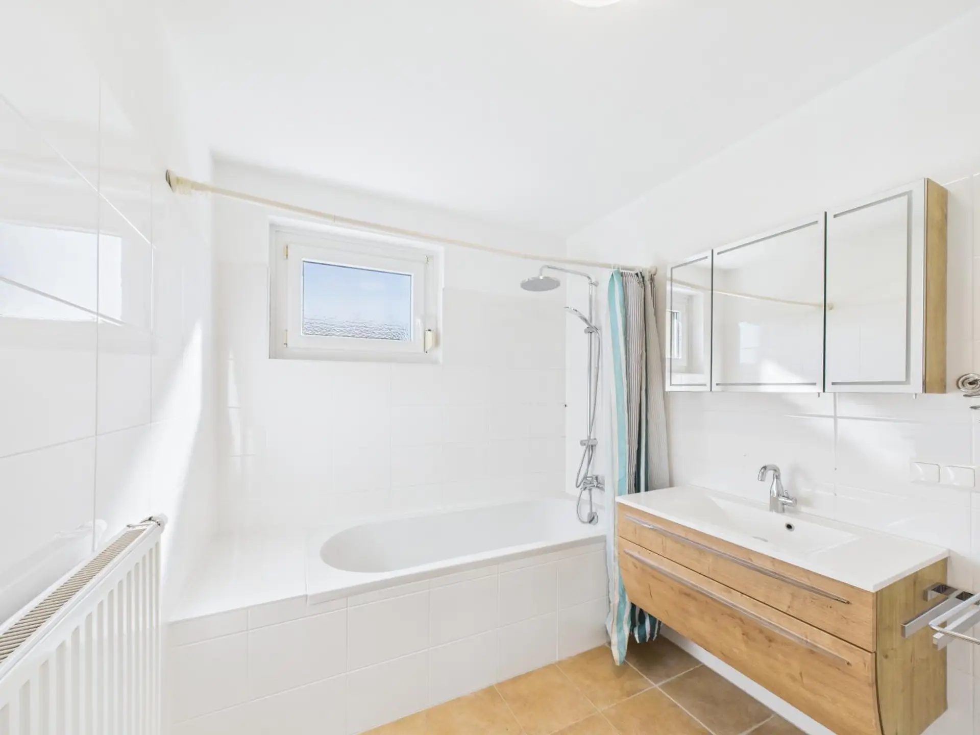 Großes Badezimmer mit Badewanne, WC und Fenster