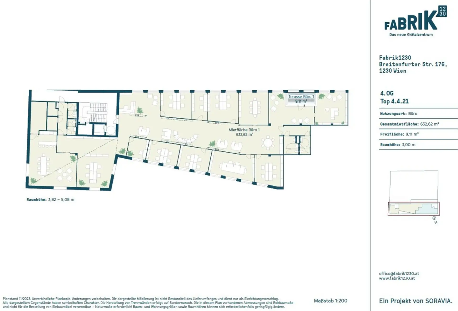 Das Büro liegt in einem neuen Designer Projekt an der Breitenfurter Straße und bietet folgende Benefits: