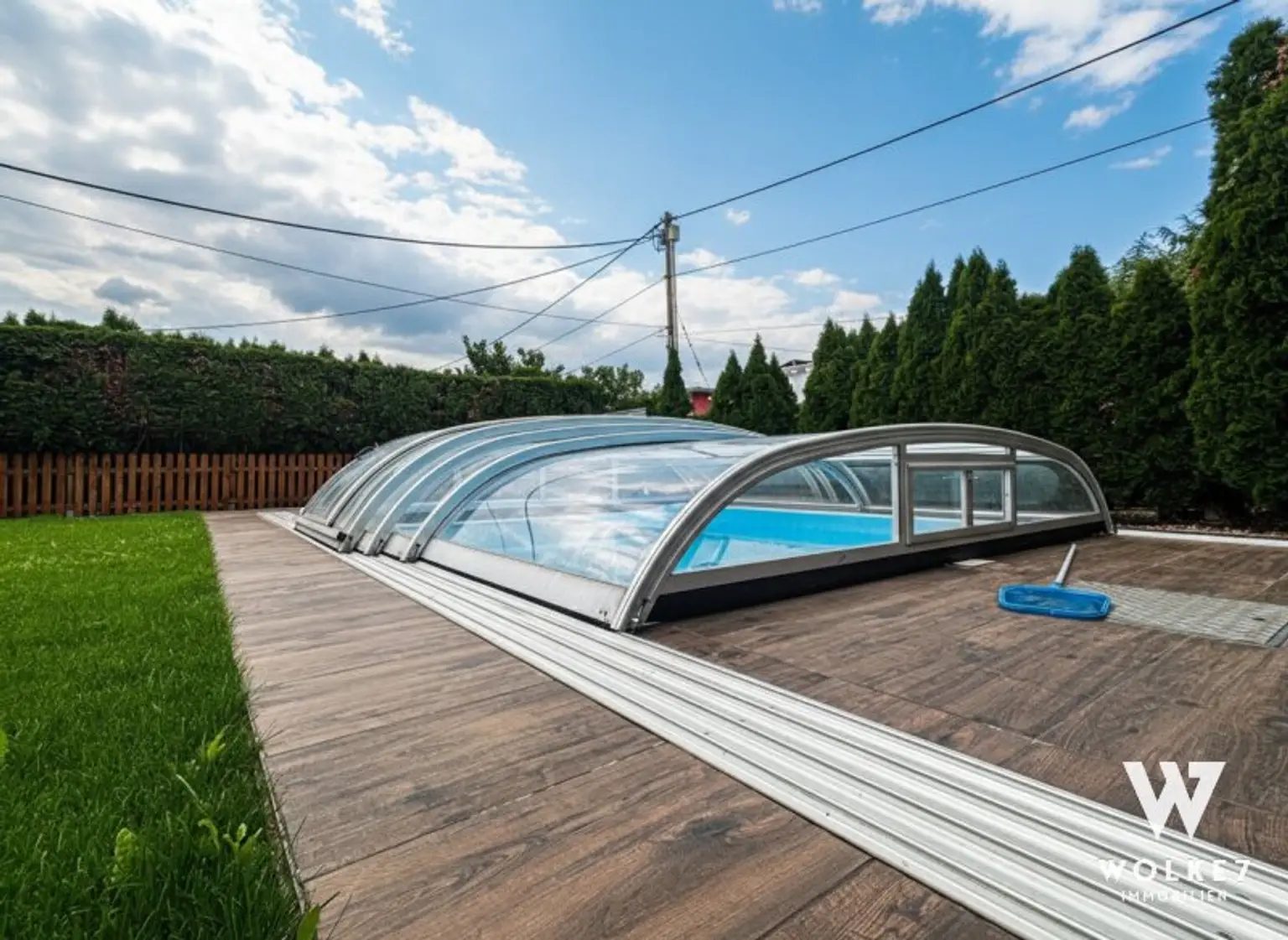 Die Immobilie ist im Kleingartenverein Leopoldau gelegen und besticht durch die äußerst ruhige Lage, die für ganzjährige Erholung sorgt. Der Bahnhof Leopoldau (S-Bahn & U1) ist fußläufig in ca. 10 Minuten erreichbar. Die Autobuslinien 29B, 36B und N25 können fußläufig in 3-5 Minuten erreicht werden, wodurch trotz der ruhigen Lage eine solide öffentliche Anbindung gegeben ist.