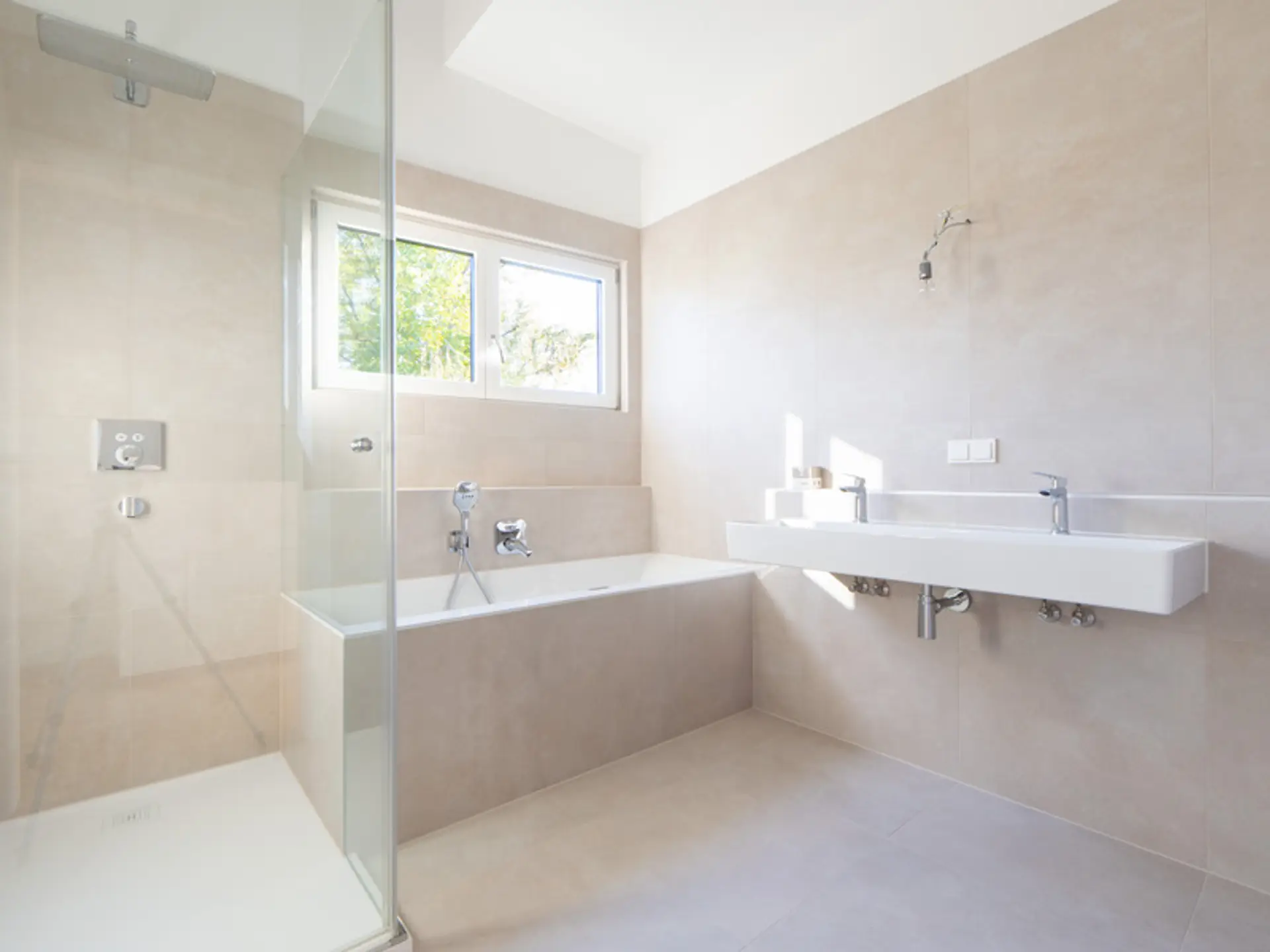 - Hochwertige Markenausstattung (Echtholzparkett, Innenstiege vom Tischler, Feinsteinzeug-Fliesen, Holz-Alu-Fenster mit 3-fach Isolierverglasung, uvm.)