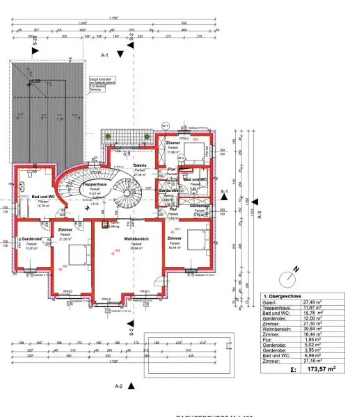 * 3 Schlafzimmer, jedes mit Garderobenraum