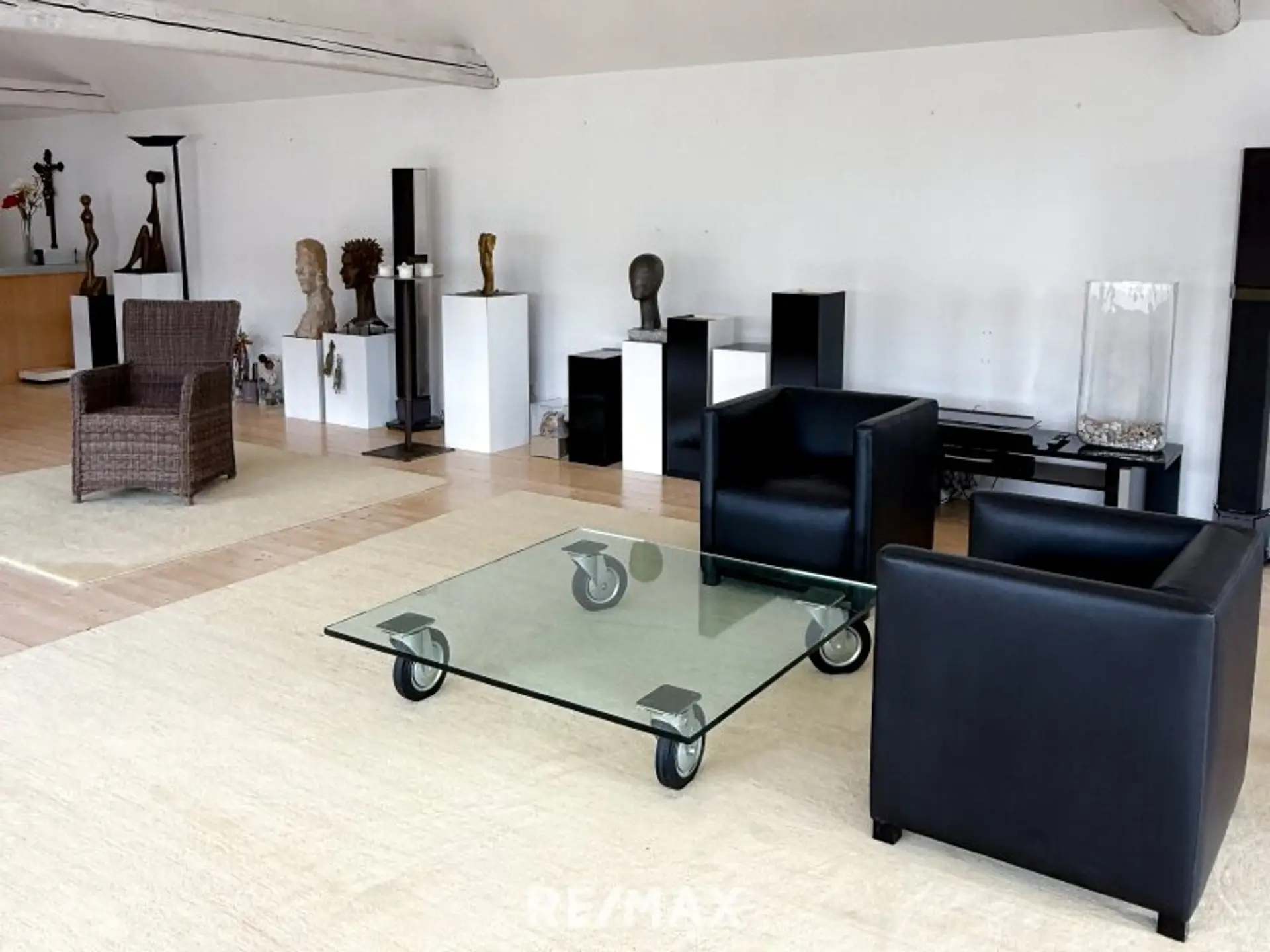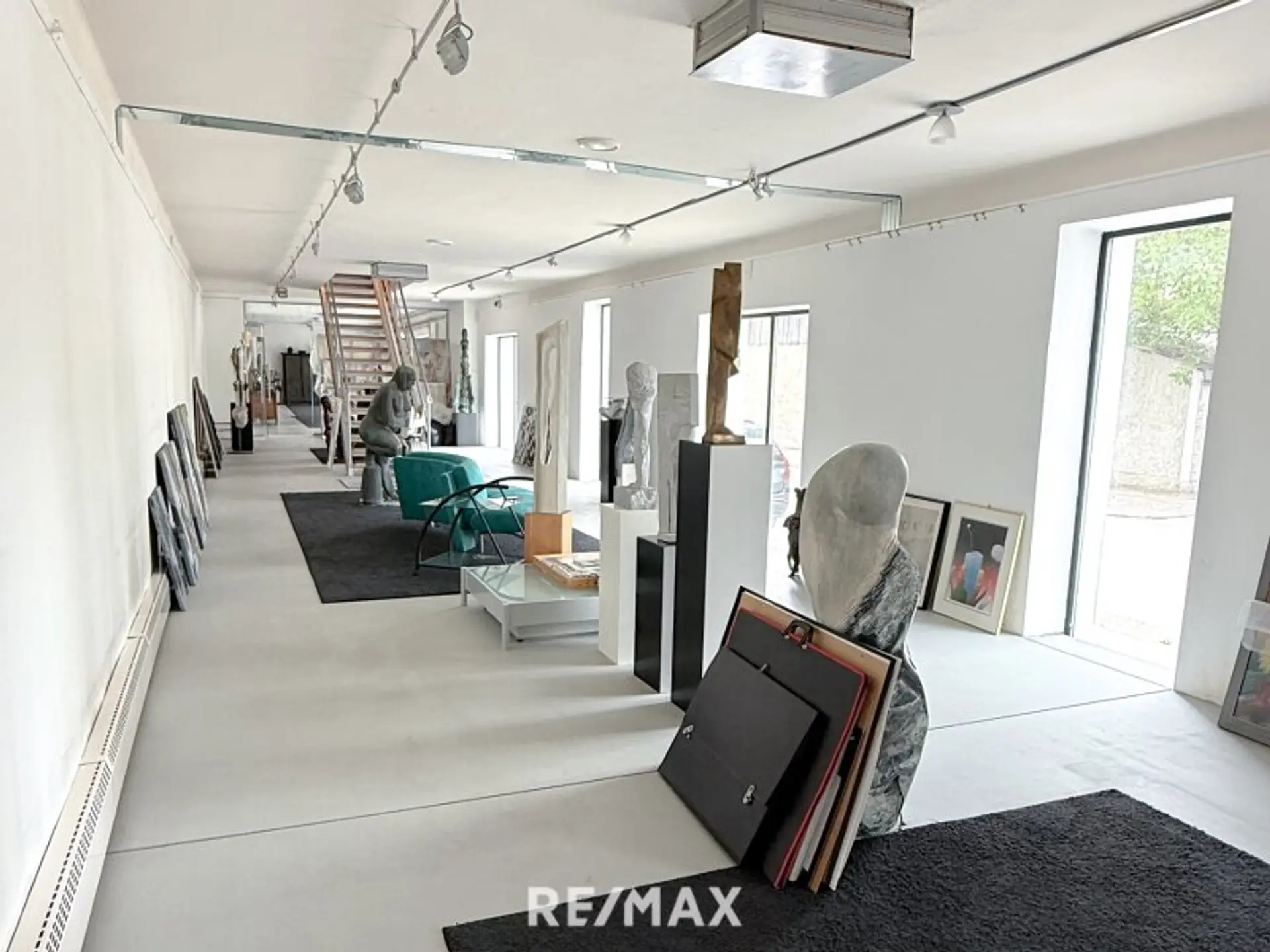 Das Haus verfügt über großzügige Flächen, die sich ideal als Ausstellungsräume oder Atelier eignen. Die offene Gestaltung ermöglicht eine flexible Nutzung – ob als Galerie, Wohnraum oder beides in einem.