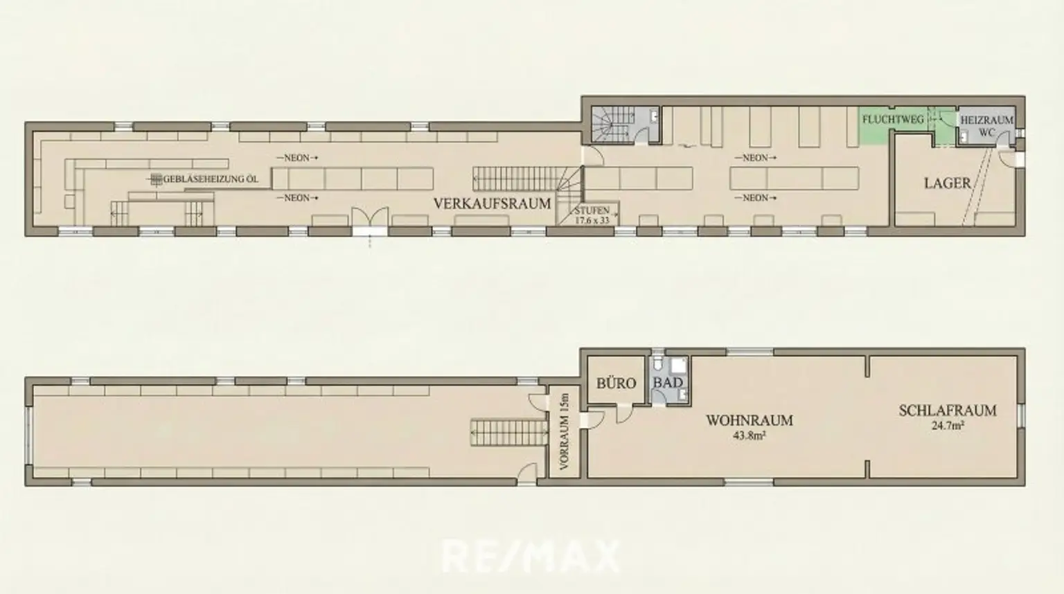 · zwei Ausstellungsräume 221,08 m² (vorderer Teil: 136,66 m² und hinterer Ausstellungsraum 84,42 m²)