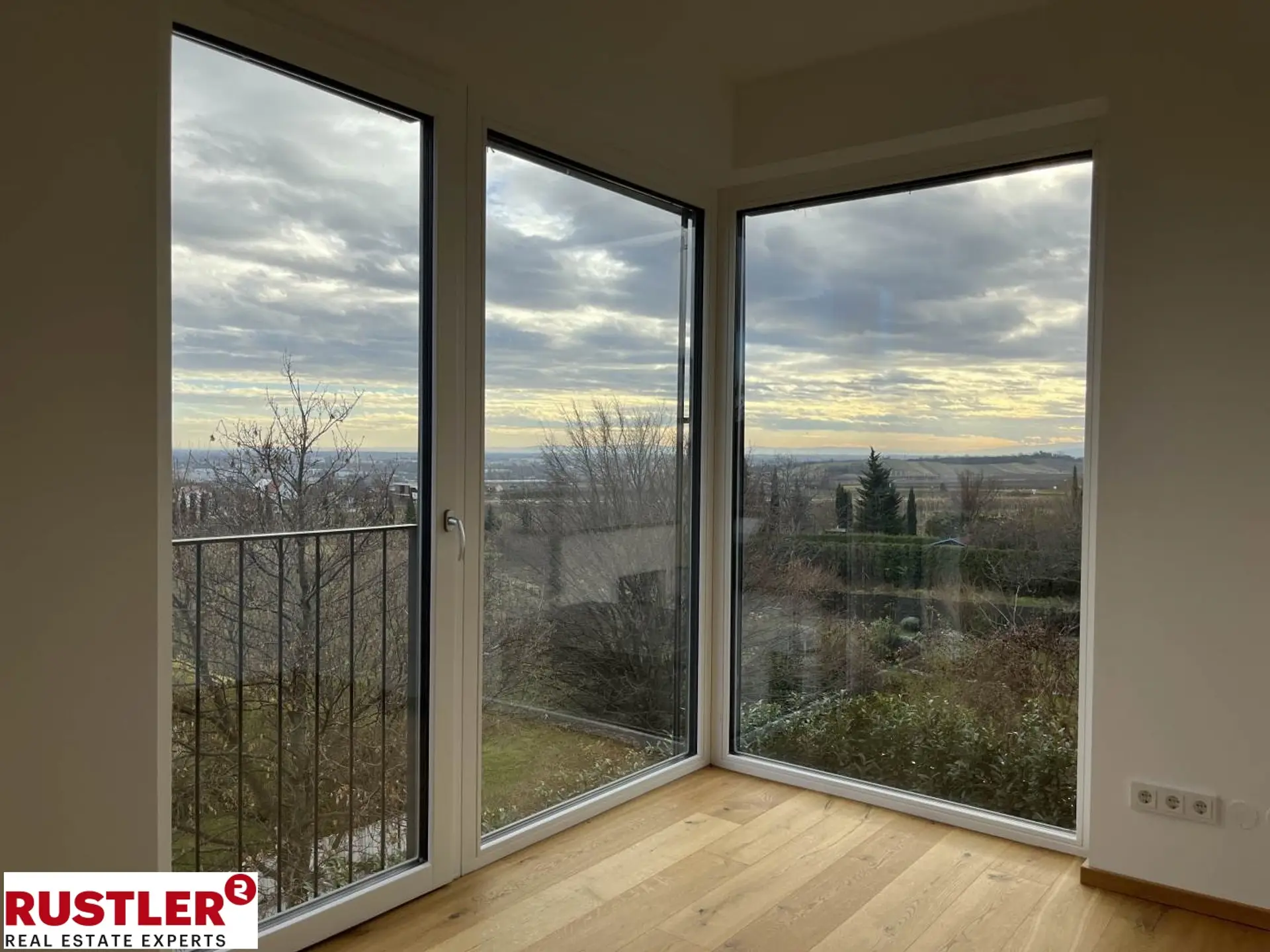 Über die inneliegende Stiege erreichen Sie drei Schlafzimmer sowie zwei großzügige Badezimmer. Vom Master-Bedroom können Sie den Balkon sowie einen schönen Weitblick genießen. Ein Zimmer bietet ein Eckfenster mit einem atemberaubenden, unverbaubaren Fernblick.