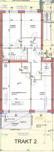 Die Wohnung verfügt über eine Wohnfläche von ca. 97,72m², zusätzlich ca. 49,60m² Gartenfläche und einer Terrasse mit 11,63m².