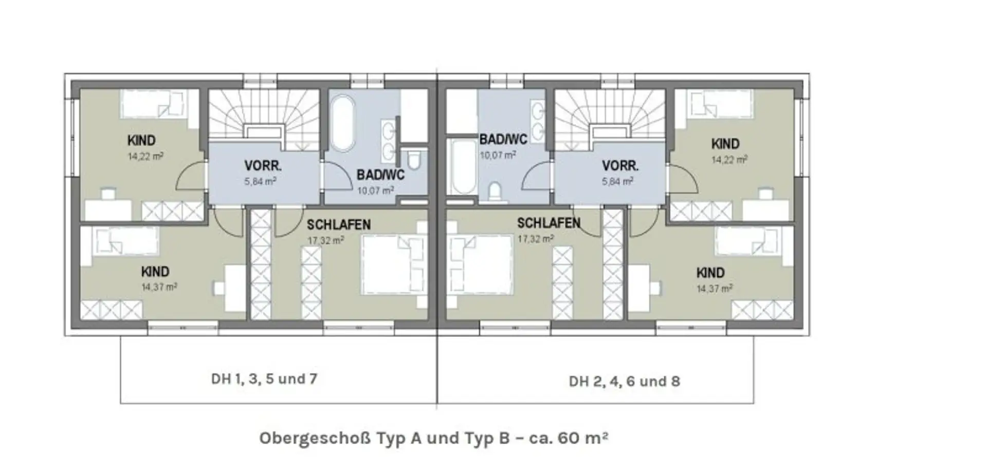 Die sonnige Südausrichtung, private Eigengärten sowie großzügige Raumhöhen von mindestens 2,60 m im Erd- und Obergeschoss sorgen für ein besonders helles und offenes Wohngefühl. Die Gärten erweitern den Wohnraum ins Freie und bieten viel Platz zum Entspannen. Auf Wunsch können in den Eigengärten der Doppelhaushälften Swimmingpools als Sonderausstattung umgesetzt werden – für zusätzlichen Wohn- und Freizeitkomfort im eigenen Zuhause.