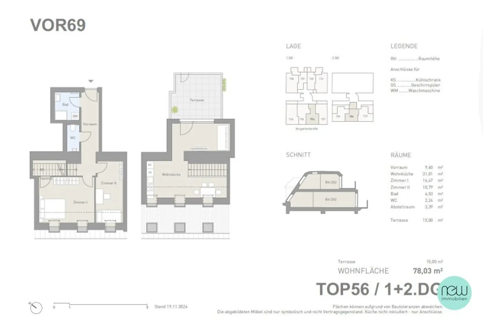 Die großzügig geschnittene 3-Zimmer Maisonette (ca 78 m²) mit ihrer tollen Dachterrasse (ca 15m²), die einen freien Weitblick über die Dächer Wiens bis zum Kahlenberg bietet, ist eine von 8 DG-Wohnungen in der Vorgartenstraße 69, die 2025 fertiggestellt wurden. Das vom Wiener Dachausbauprofi ObenAuf mit optimalem technischen Know-How aufwendig modernisierte Dachgeschoss hat Charakter. Es bringt durch seine stylish, flott und modern gestaltete Optik Farbe und Frische ins elegante, klassische Stiegenhaus des schönen Altbaus mit Schmiedeeisengeländer, Holzhandlauf und Mosaikfliesen. Das Haus ist sehr gut erhalten und gepflegt.