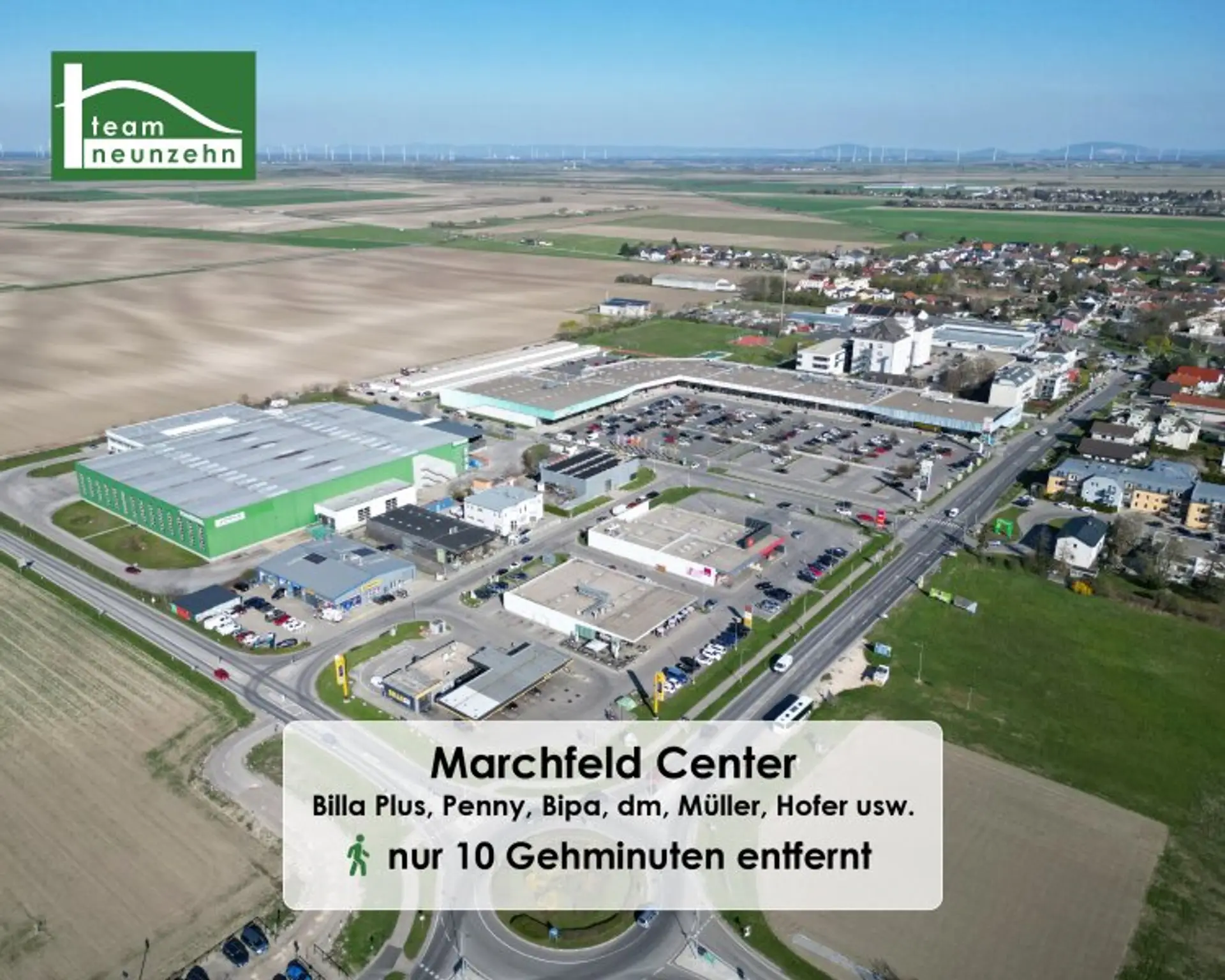 Ein weiterer Vorteil dieser Lage ist die Nähe zu Groß-Enzersdorf, einer charmanten Gemeinde, die mit lokalen Märkten und traditionsreichen Gasthäusern aufwartet. Einkaufsmöglichkeiten wie das Marchfeld Center bieten alles für den täglichen Bedarf, ohne den Trubel der Innenstadt.