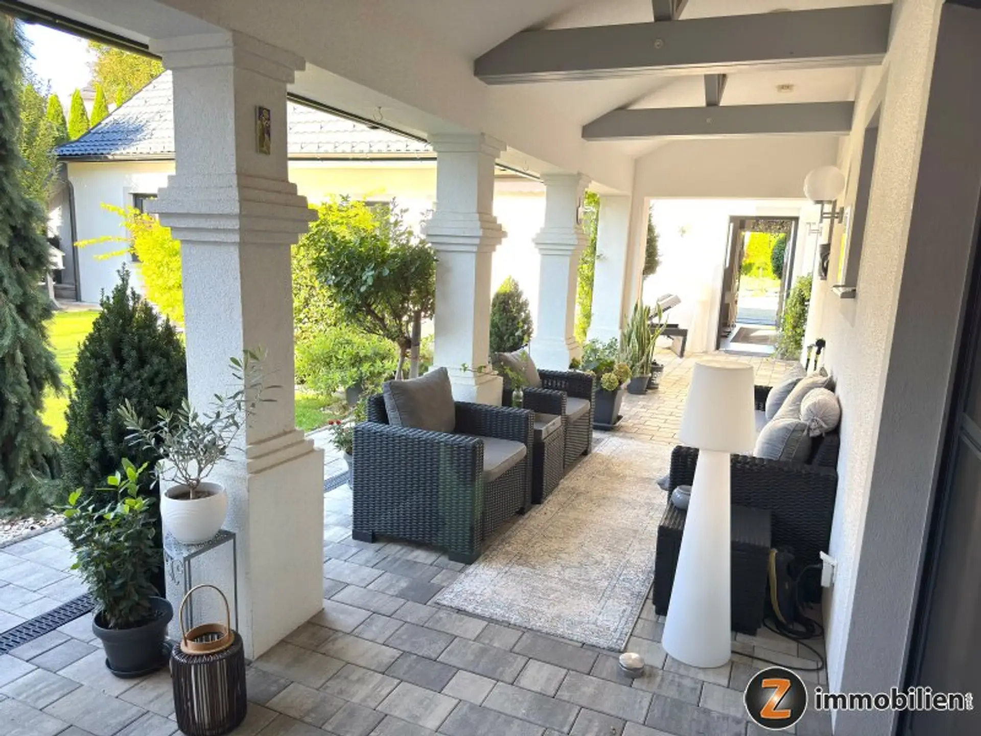 In der Thermen- und Golfregion Stegersbach gelangt ein modernes Haus mit zwei barrierefreien, getrennten Wohneinheiten, einem großzügigen Nebengebäude, Carport und traumhaftem Garten zum Verkauf. Die erste Wohneinheit umfasst ca. 141 m² und gliedert sich in Vorraum, Wohnzimmer mit Holzofen, Esszimmer, moderne Küche mit hochwertigen E-Geräten und Zugang zur Terrasse, Schrankraum, Badezimmer mit Dusche und Fenster, ein Durchgangszimmer, WC sowie ein Schlafzimmer mit Atelier.