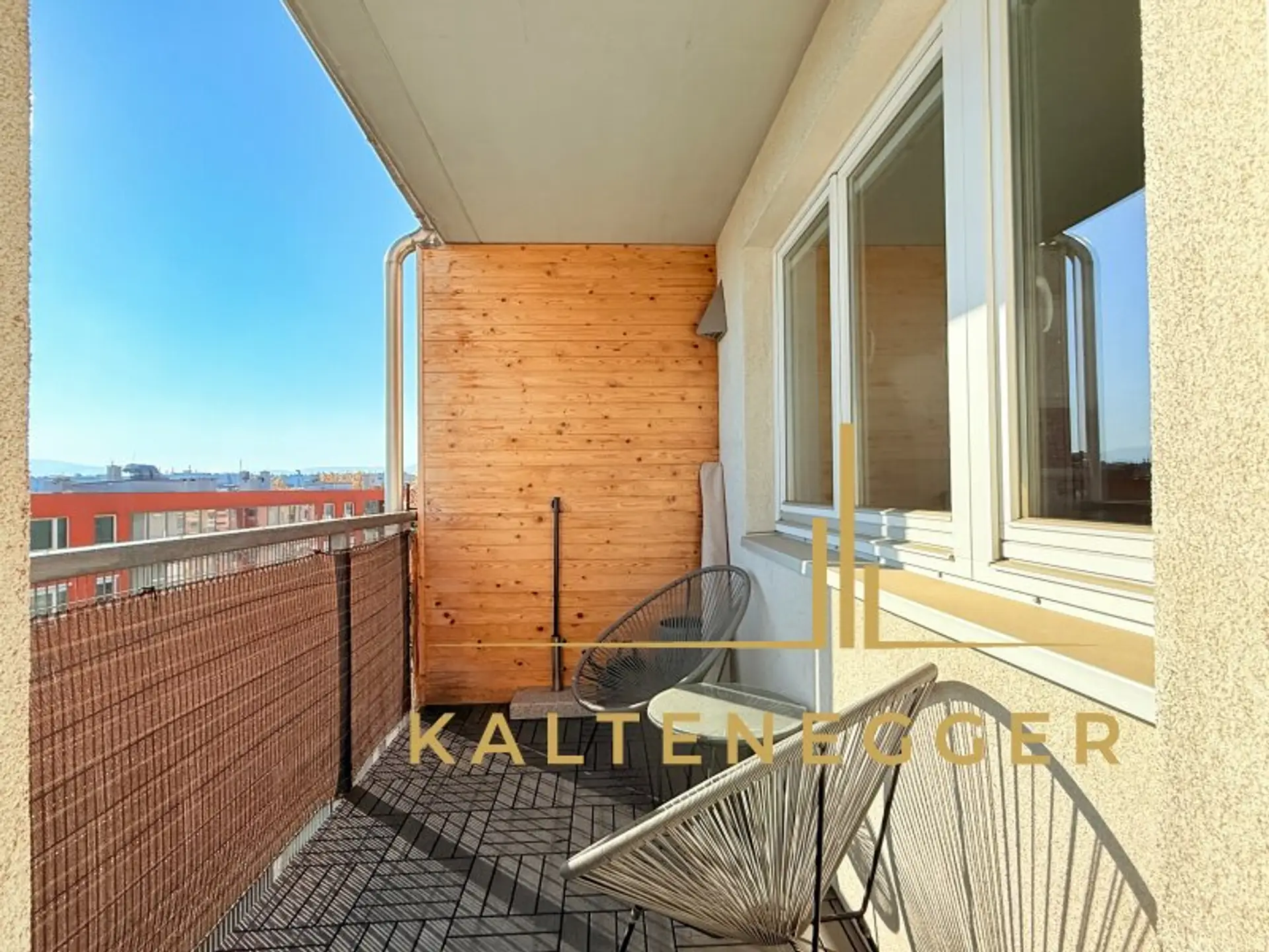 Von hier aus gelangt man auch auf die Loggia mit 5,38 m², die aufgrund der ruhigen Ausrichtung ideal ist, um den Tag bei einem Kaffee oder einem Glas Wein ausklingen zu lassen.