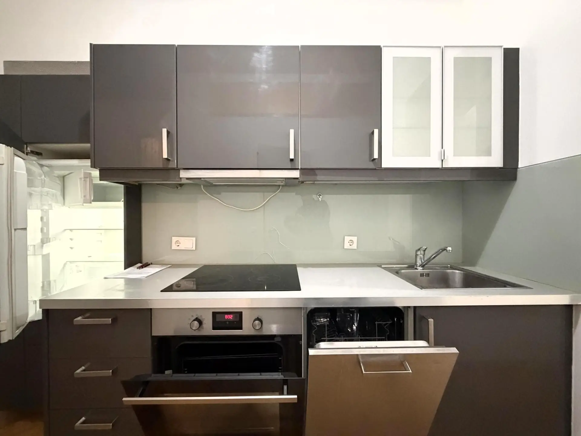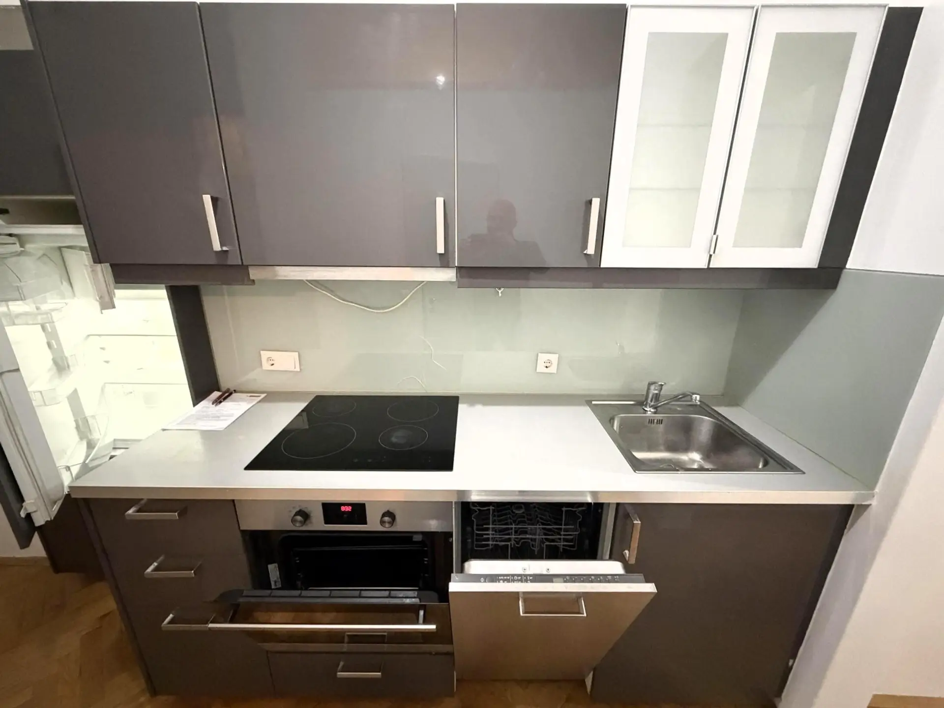 The apartment with room height specific to old century buildings consists of a large entrance hall, suitable also as a dining kitchen, 1 bathroom with shower, washbasin, toilet and towel dryer, as well as a bedroom and a study or living room. The layout of the apartment is modern and extremely efficient, as the entrance area also serves as a dining kitchen and practically not a single m² of living space is lost with a hallway or similar.
