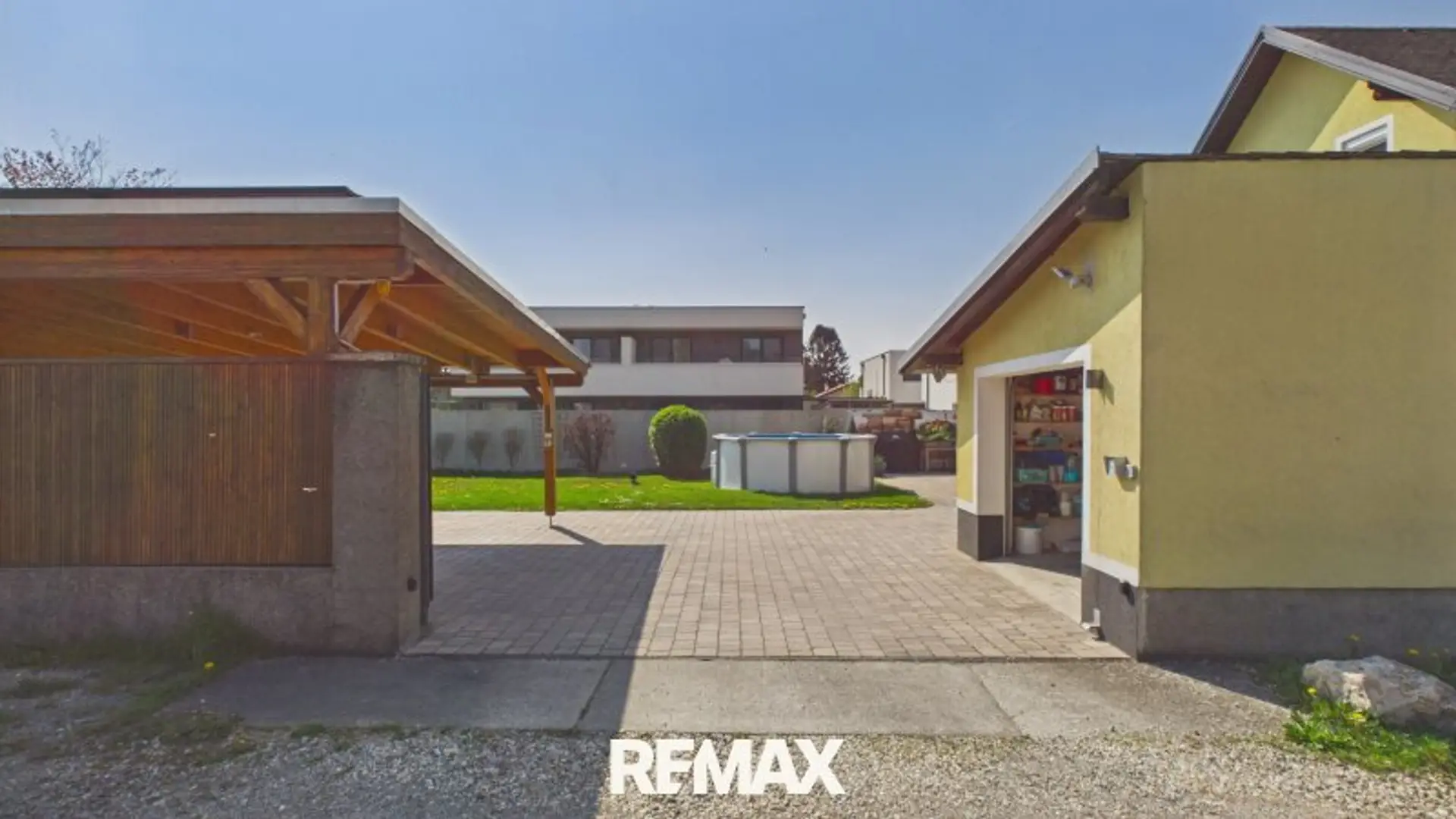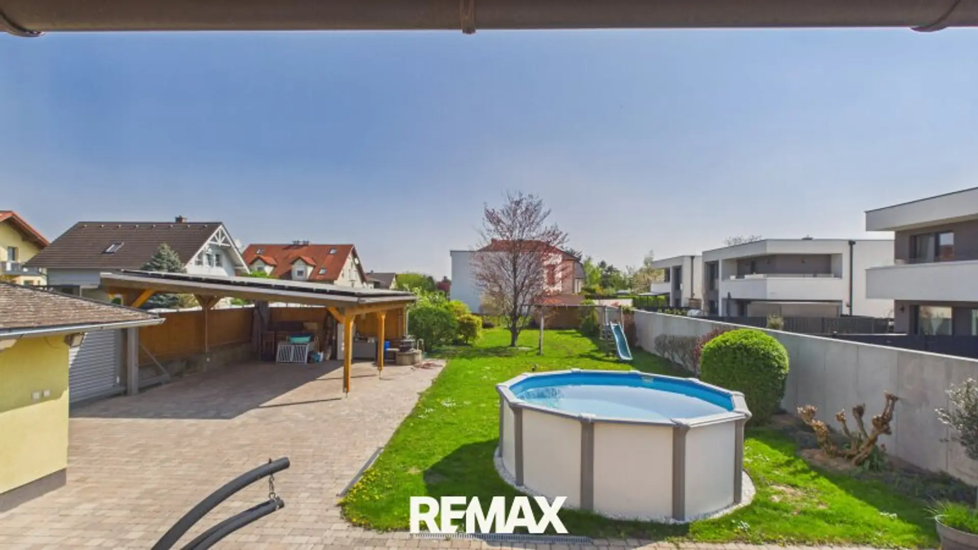 Auch im Außenbereich überzeugt die Liegenschaft: Neben einer Garage mit Platz für ein Fahrzeug und E-Auto-Anschluss steht ein Carport zur Verfügung. Der liebevoll angelegte Garten bietet ausreichend Platz zum Entspannen und Spielen und wird durch einen Pool sowie ein Gartenhaus ergänzt.