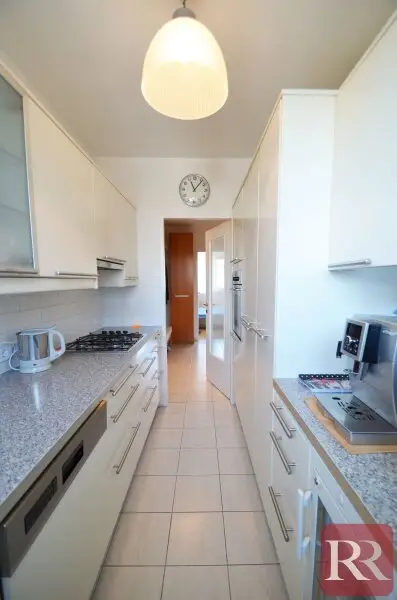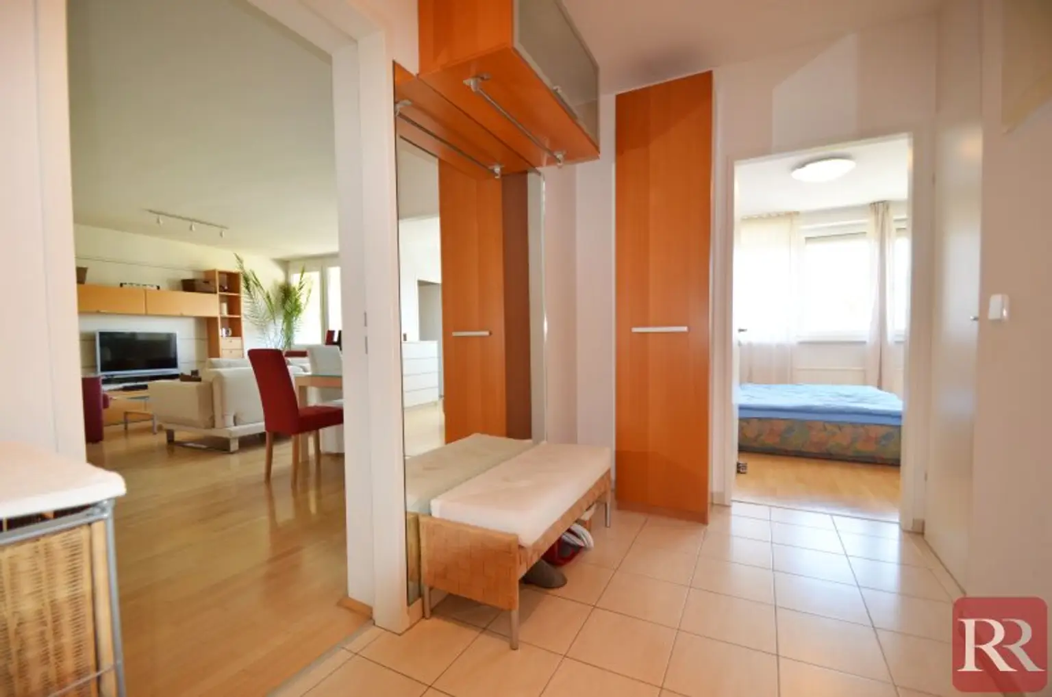 Vom Vorraum aus gelangen Sie in die Küche, in den Wohnbereich und in den Schlafbereich mit anschließendem Bad und Ankleidezimmer. Vom Wohnzimmer aus sind das zweite (Schlaf-) Zimmer, ein weiteres Bad sowie das separate WC begehbar. Die großen Fensterfronten zur Loggia bieten einen wunderschönen Ausblick auf die Weinberge.