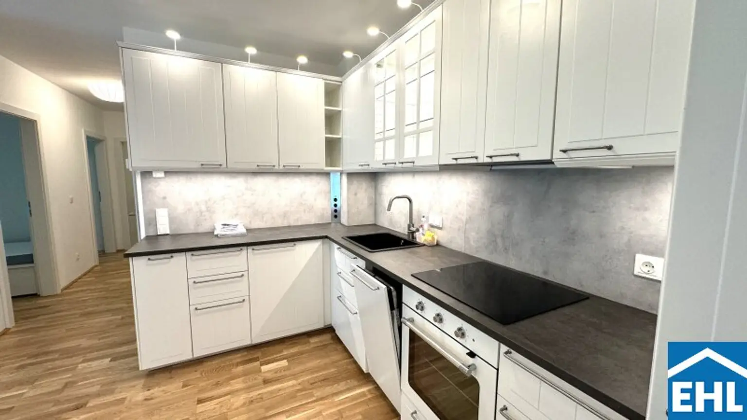 Die Wohnung war kurzzeitig bewohnt und würde inkl. der abgebildeten Möblierung übergeben werden. Die Ablöse für das auf den Fotos abgebildete Mobiliar inkl. Küche beträgt EUR 2.000,-.