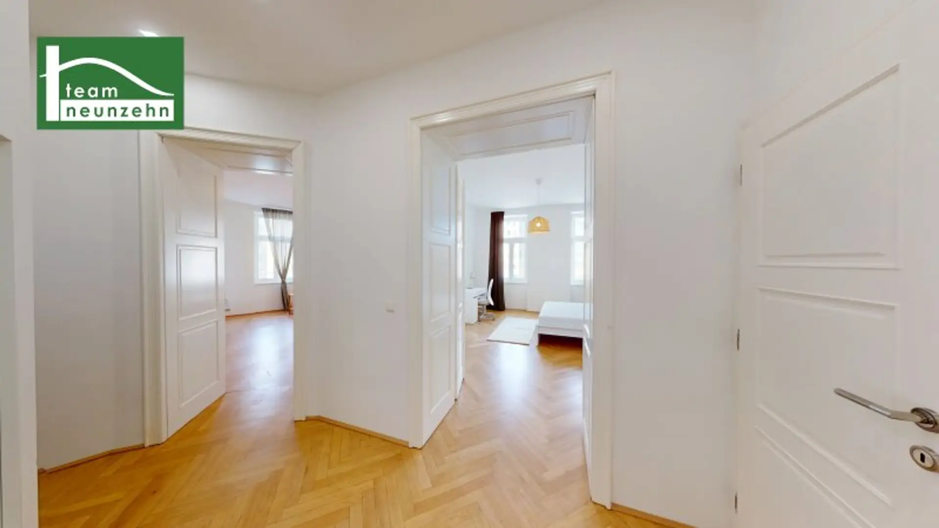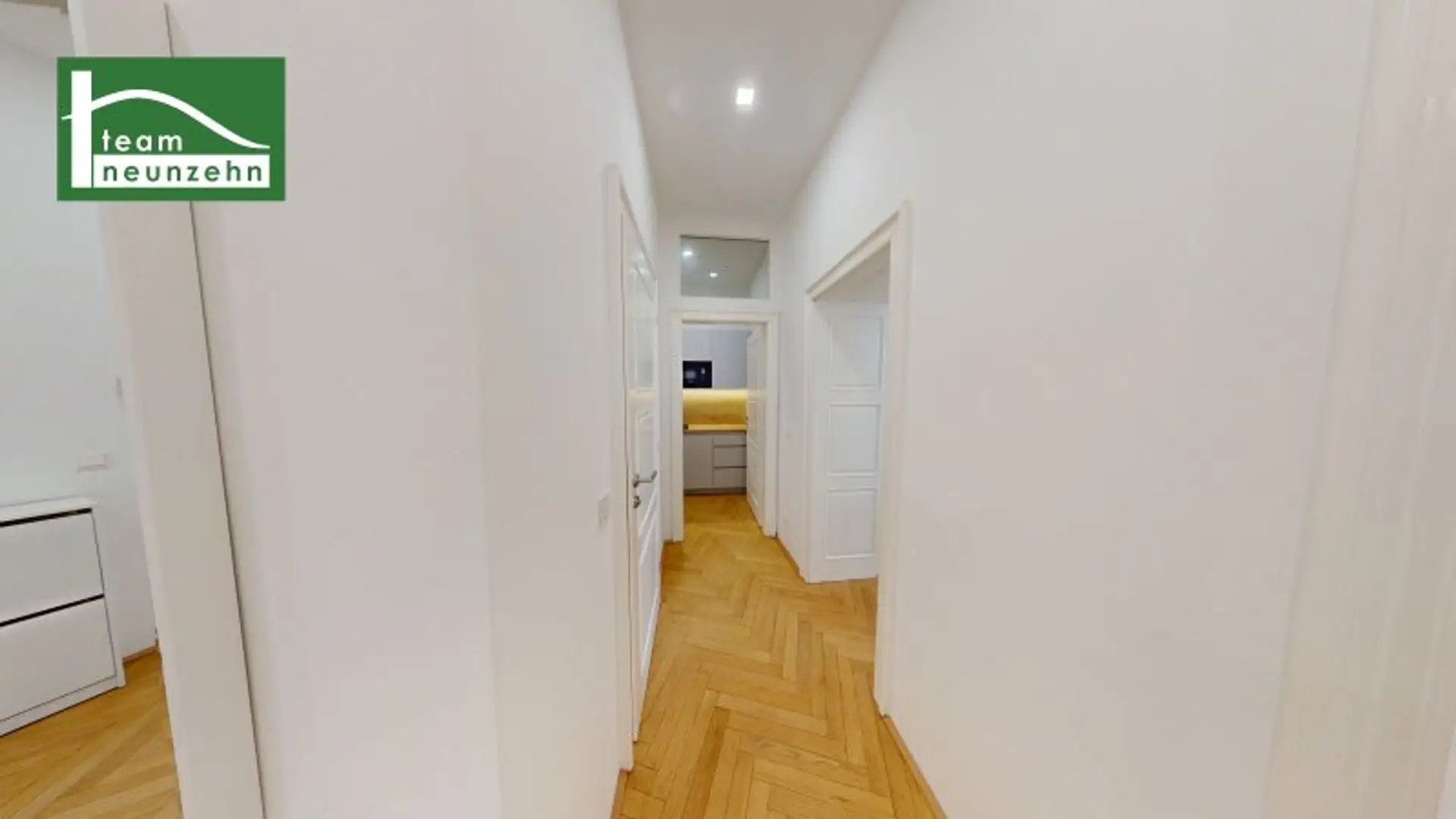 Hochwertige Sanierung: Echtholzparkett in Fischgrätmuster, Fußbodenheizung, stilvolle Sanitärausstattung