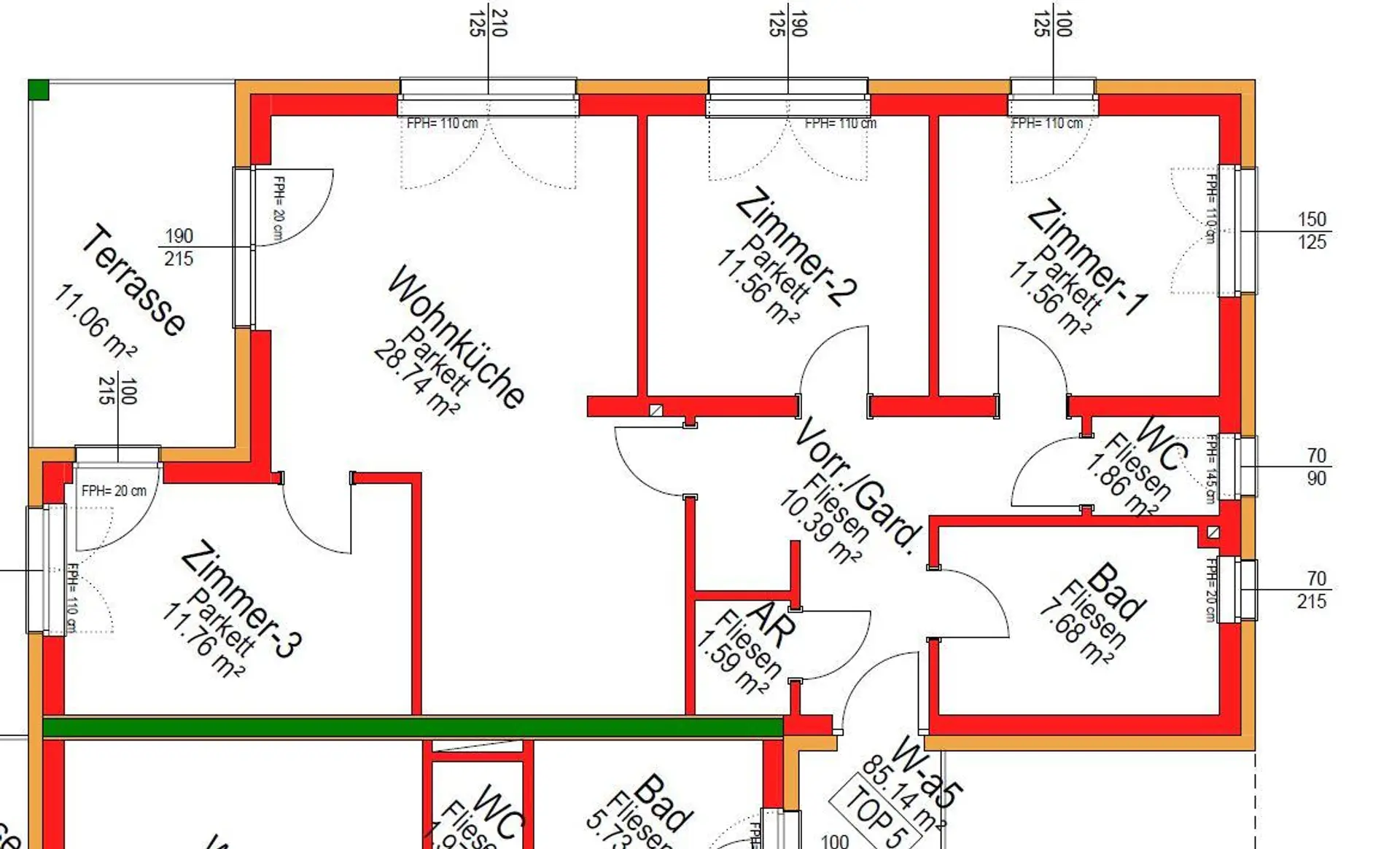 ca. 85 m² Wohnfläche, ca. 11 m² Balkon überdacht
