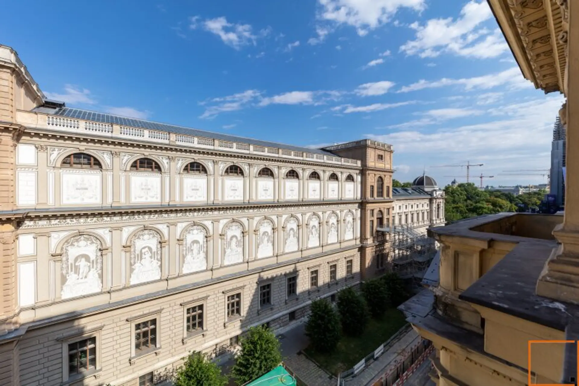 Von den hohen, schönen Fenstern genießen Sie einen herrlichen Ausblick auf die Fresken an der Fassade der Universität. Die Wohnung ist hell und sonnendurchflutet und hat kein vis à vis.