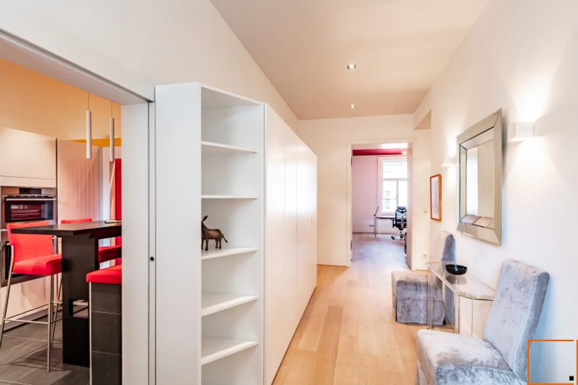 Die Hauseingangstüre ist ständig geschlossen, zusätzlich hat der Eigentümer einen Teil des Ganges abgetrennt, damit wirklich nur Sie Zugang zum Bereich vor Ihrer Wohnung haben. Die Eingangstüre und die Zwischentüre zum Lift sind mit einem modernen Chip-System ausgestattet.