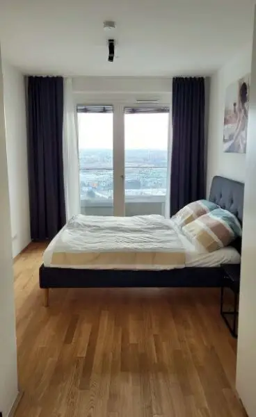 Zur Vermietung gelangt eine möblierte und neuwertige 2-Zimmer-Wohnung mit Balkon und Loggia im Haus der Superlative (One Tower - Modecenterstraße 20)!