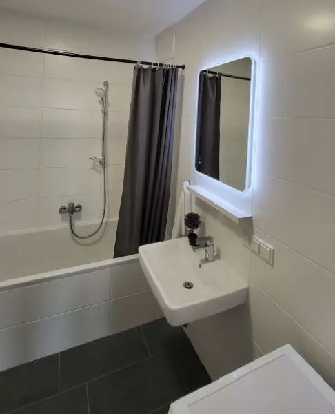 * Waschmaschine im Badezimmer vorhanden;